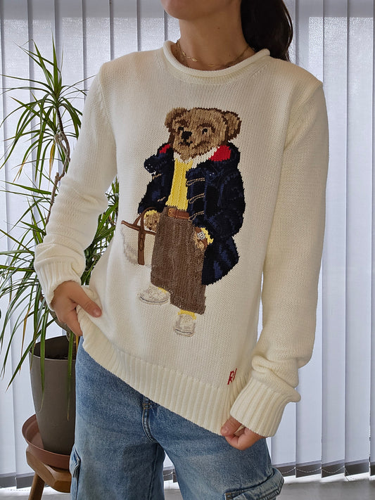 🏷 NEUF : Pull en maille crème polo bear brodé de collection - XS/34
