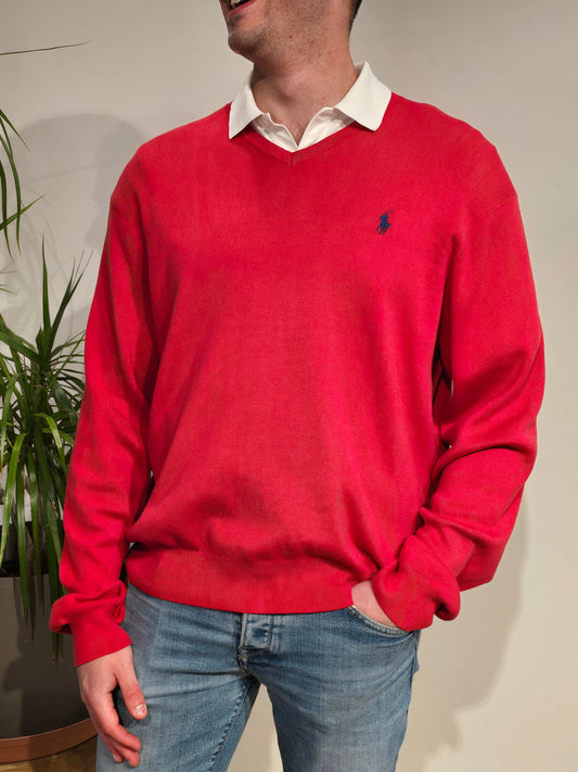 Pull col V en coton rouge - XL
