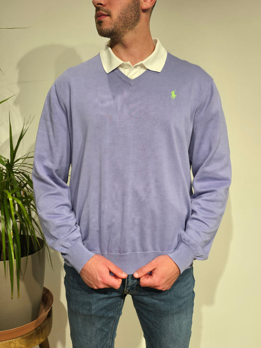 Pull léger col V violet - L