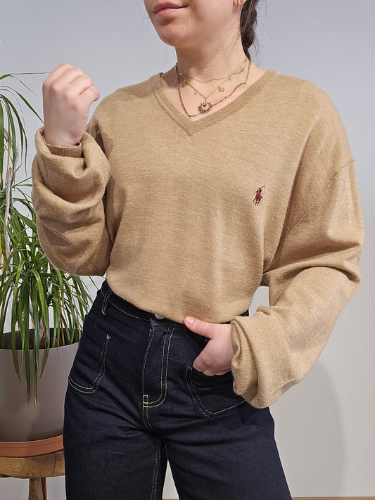 Pull léger col V marron - XXL
