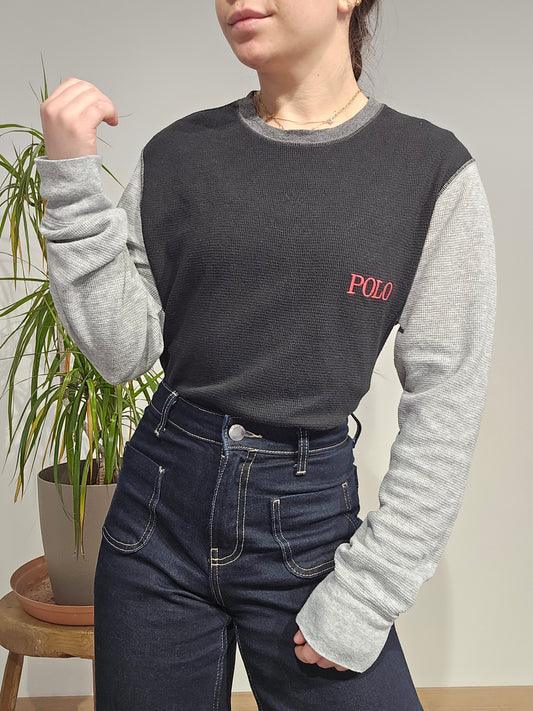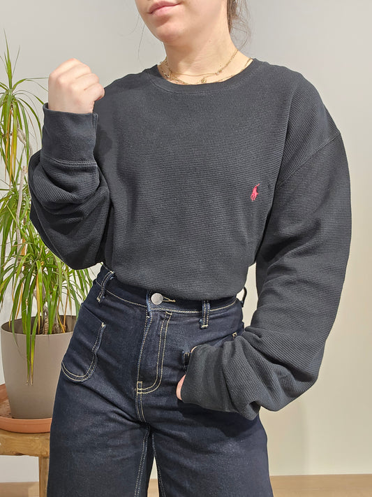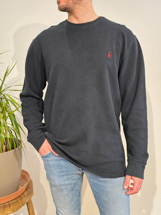 Pull léger en coton noir/gris - M