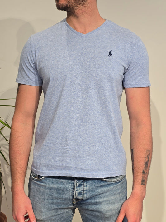 Tee-shirt col V en coton bleu - S