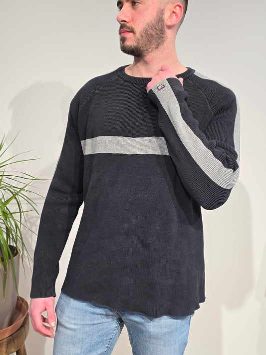 Pull gris col polo des années 80' - XXL