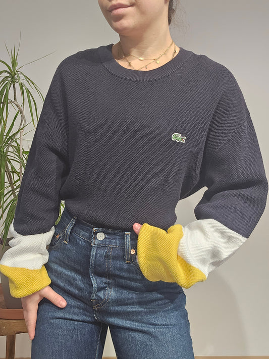 Pull en maille piquée marine détails colorés - XL