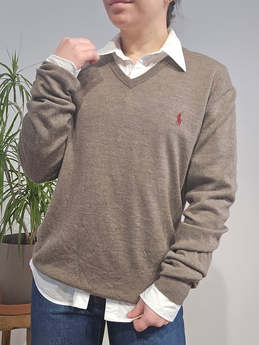 Pull col V en laine marron - S/M