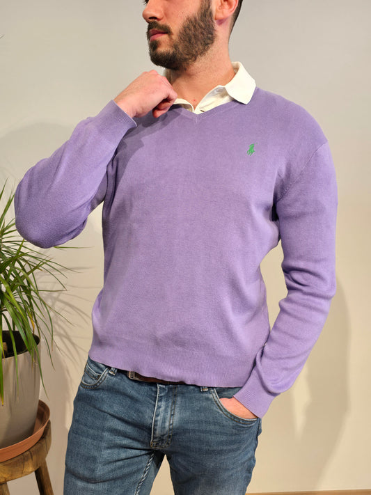 Pull col V en coton violet - S