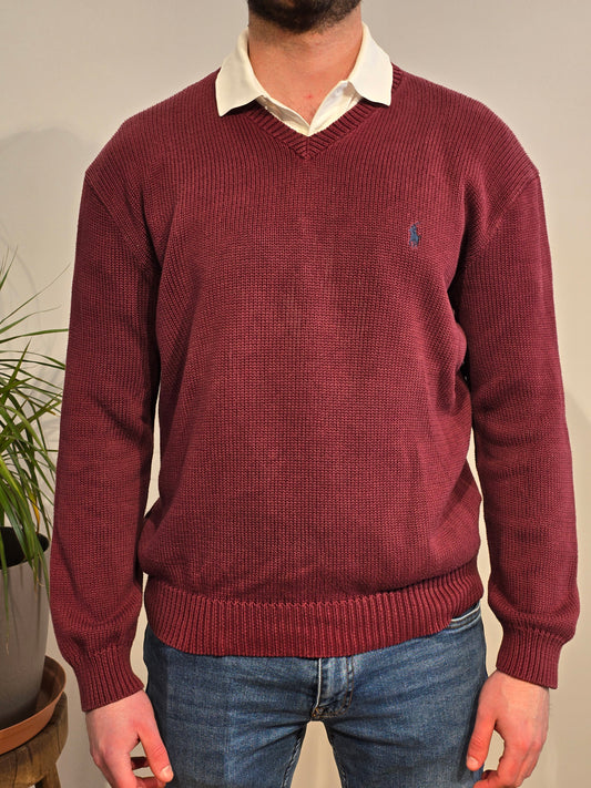 Pull col V en maille bordeaux - L