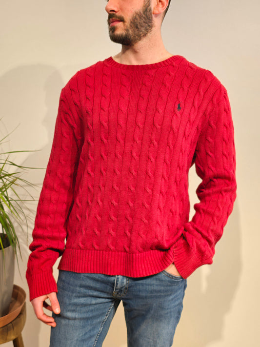 Pull col rond en maille torsadée rouge - XL/XXL