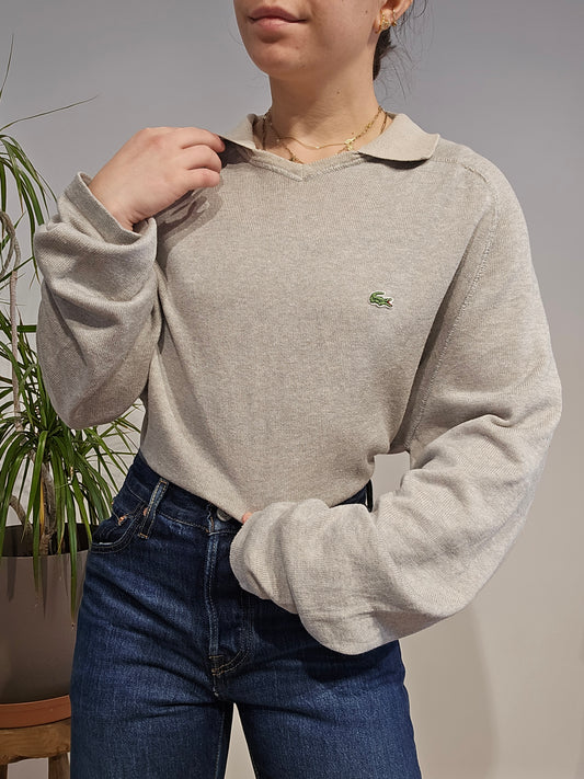 Pull gris col polo des années 80' - L/XL