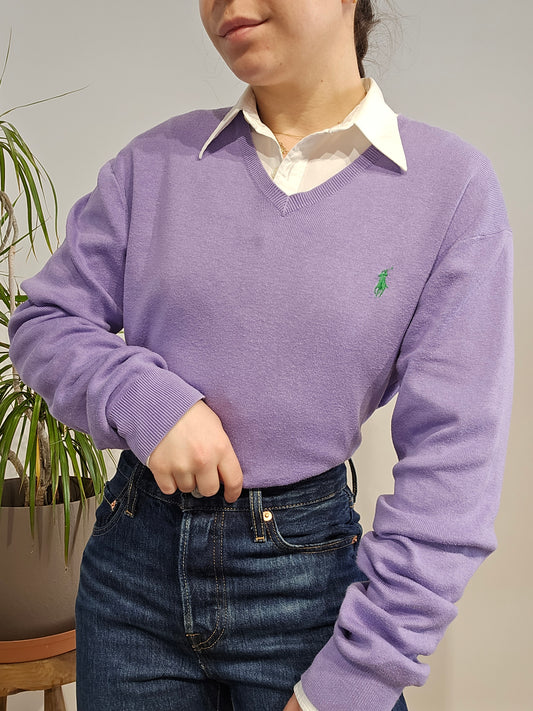 Pull col V en coton violet - S/M