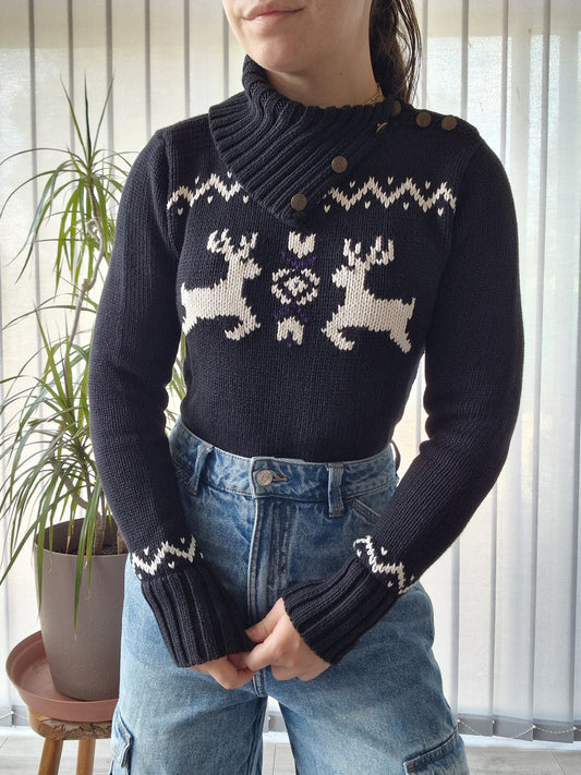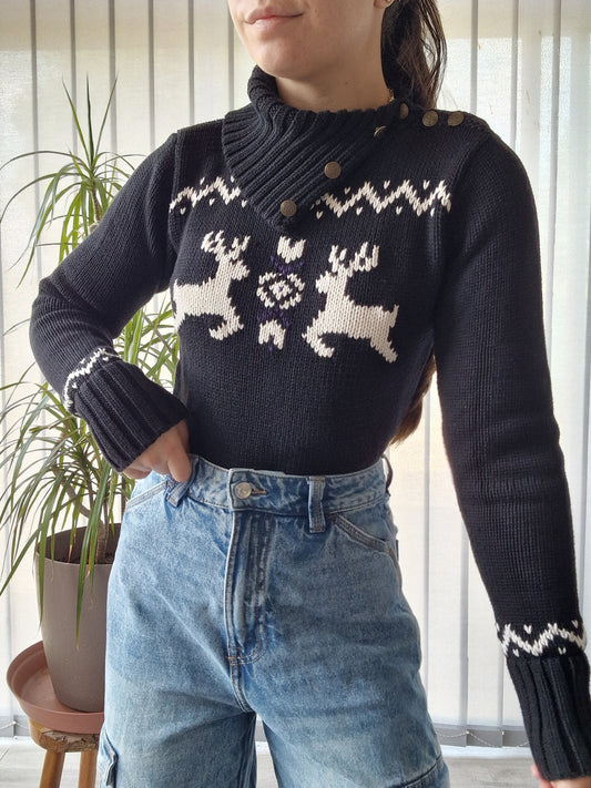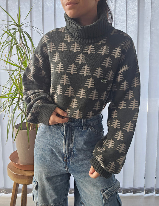 Pull col roulé Noël des années 90' Lacoste - XL/42