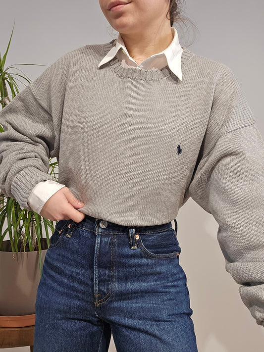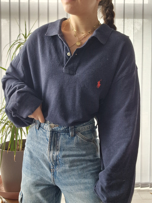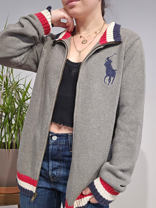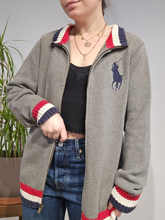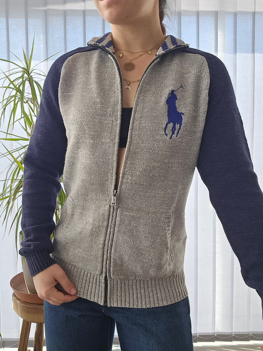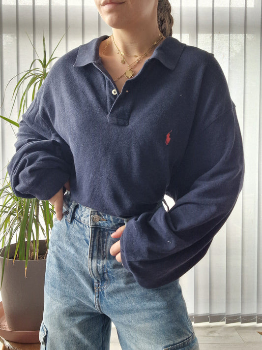 Cardigan en maille épaisse bleu marine des années 80' - XL/42