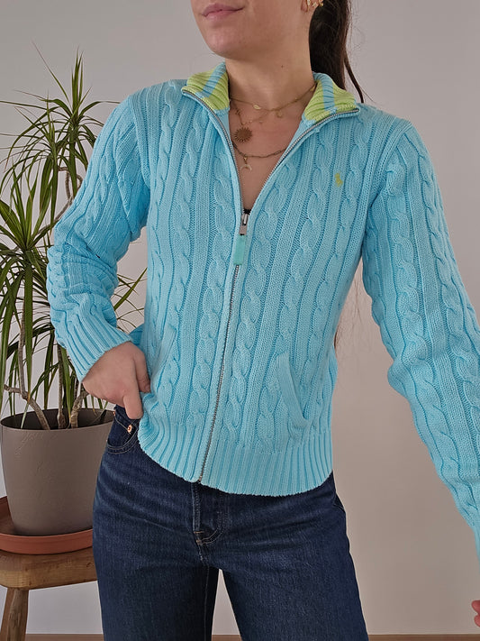 Veste en maille torsadée bleu ciel - XS/34