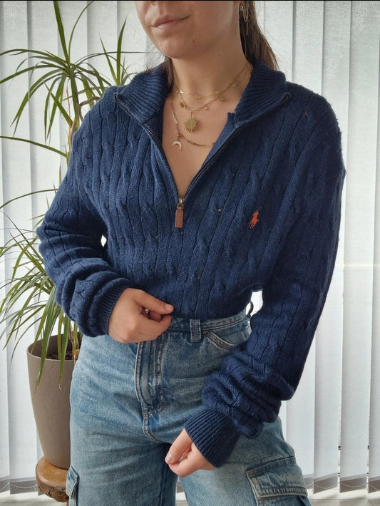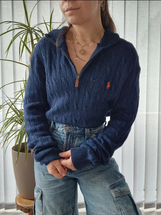 Pull en maille torsadée bleu "polo" - XS/34