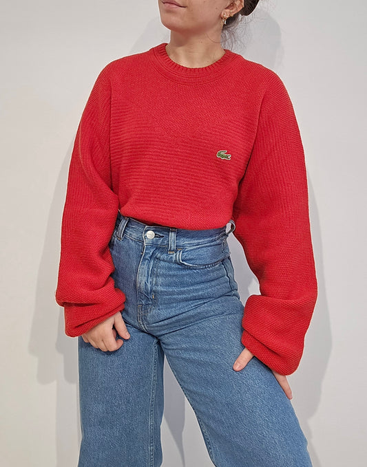 Pull vintage rouge des années 80' fabriqué en France - XL