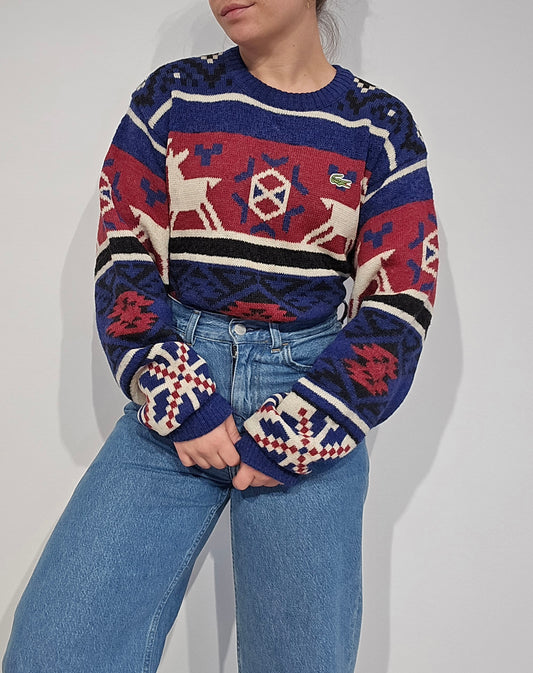 Pull en laine à motifs des années 80' fabriqué en Espagne - S