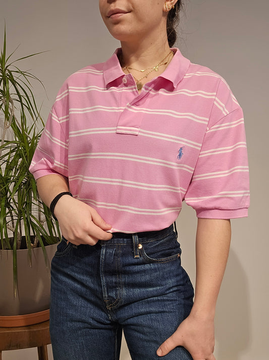 MIXTE Polo rose à rayures - L homme / XL femme