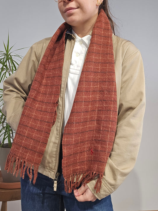 Écharpe en laine de mouton écossaise brique à frange - TU