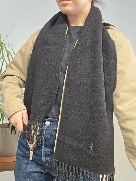 Écharpe en laine noire à frange - TU