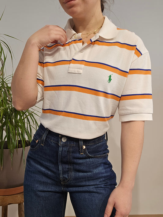 Polo blanc à rayures - S