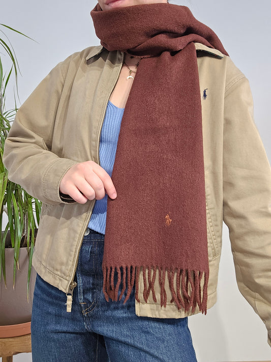 Écharpe en laine marron à frange - TU