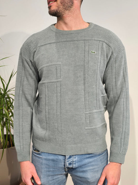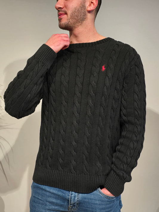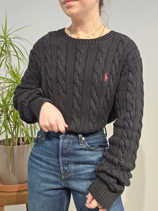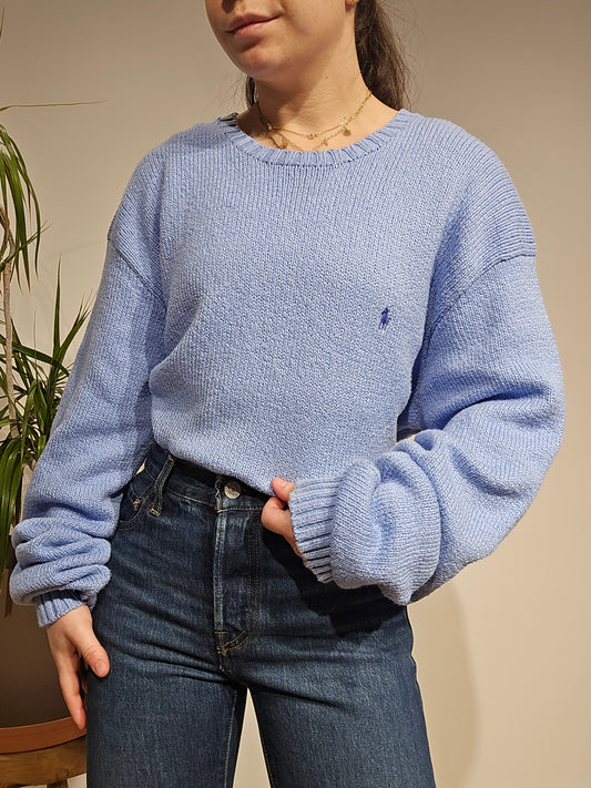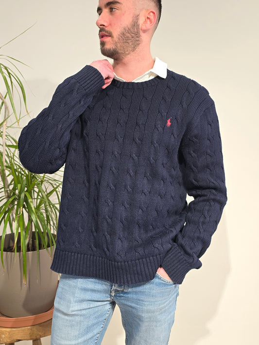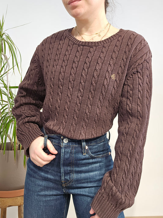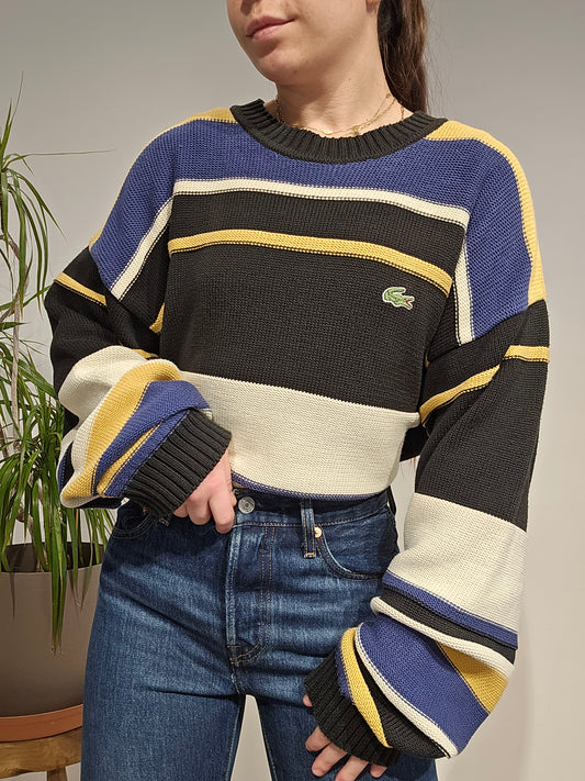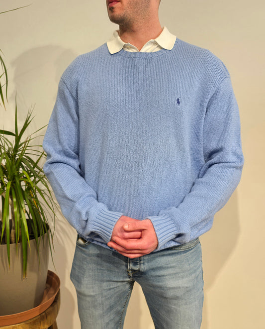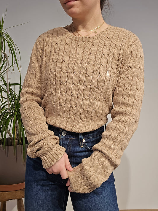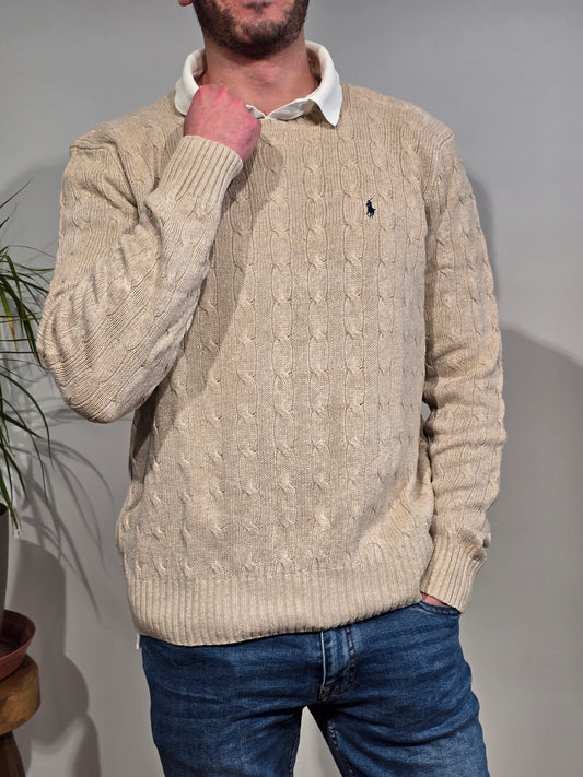 Pull col rond en maille torsadée jaune/blanc collection RLR - S/M