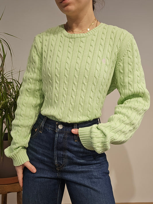 Pull col rond vert clair collection RLR - M