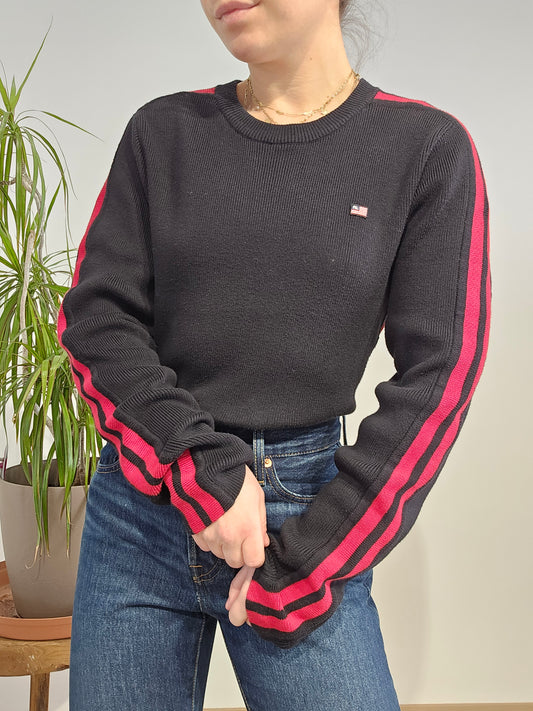 Pull en maille côtelée noir des années 90' american flag - S/M