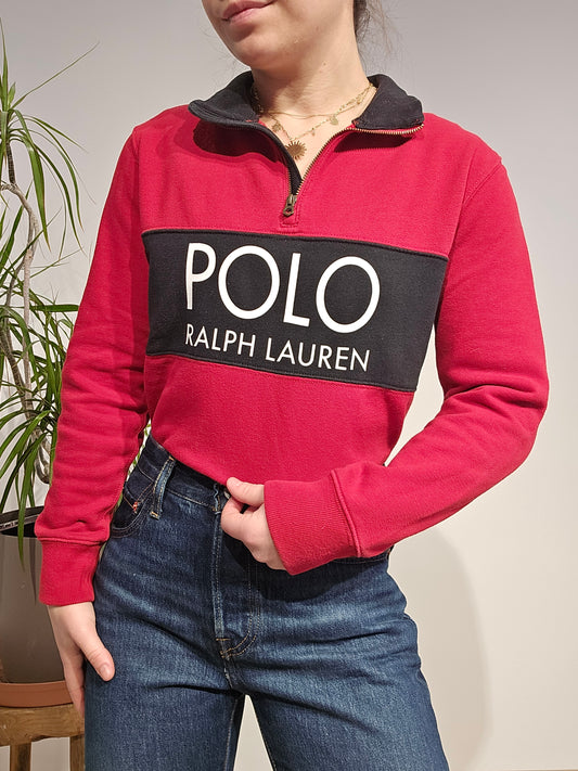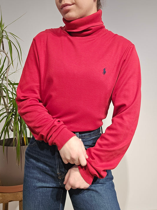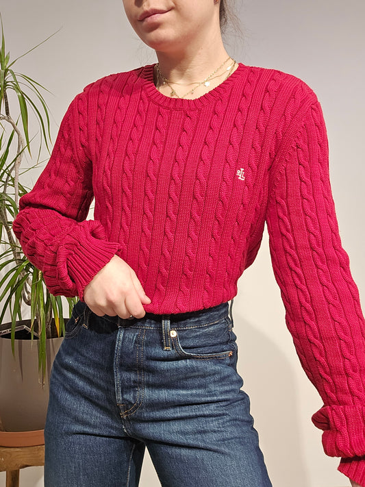 Pull col rond en maille torsadée rouge collection RLR - M/L