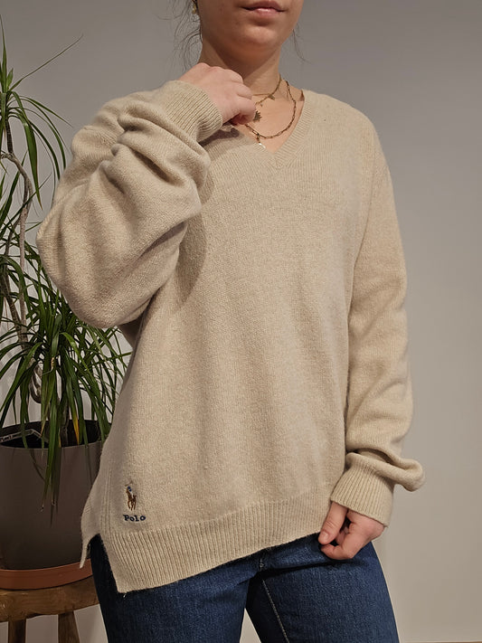 Pull col rond en maille beige - L/XL