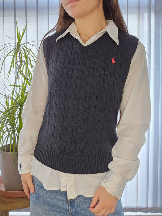 Cardigan en maille épaisse bleu marine des années 80' - XL/42