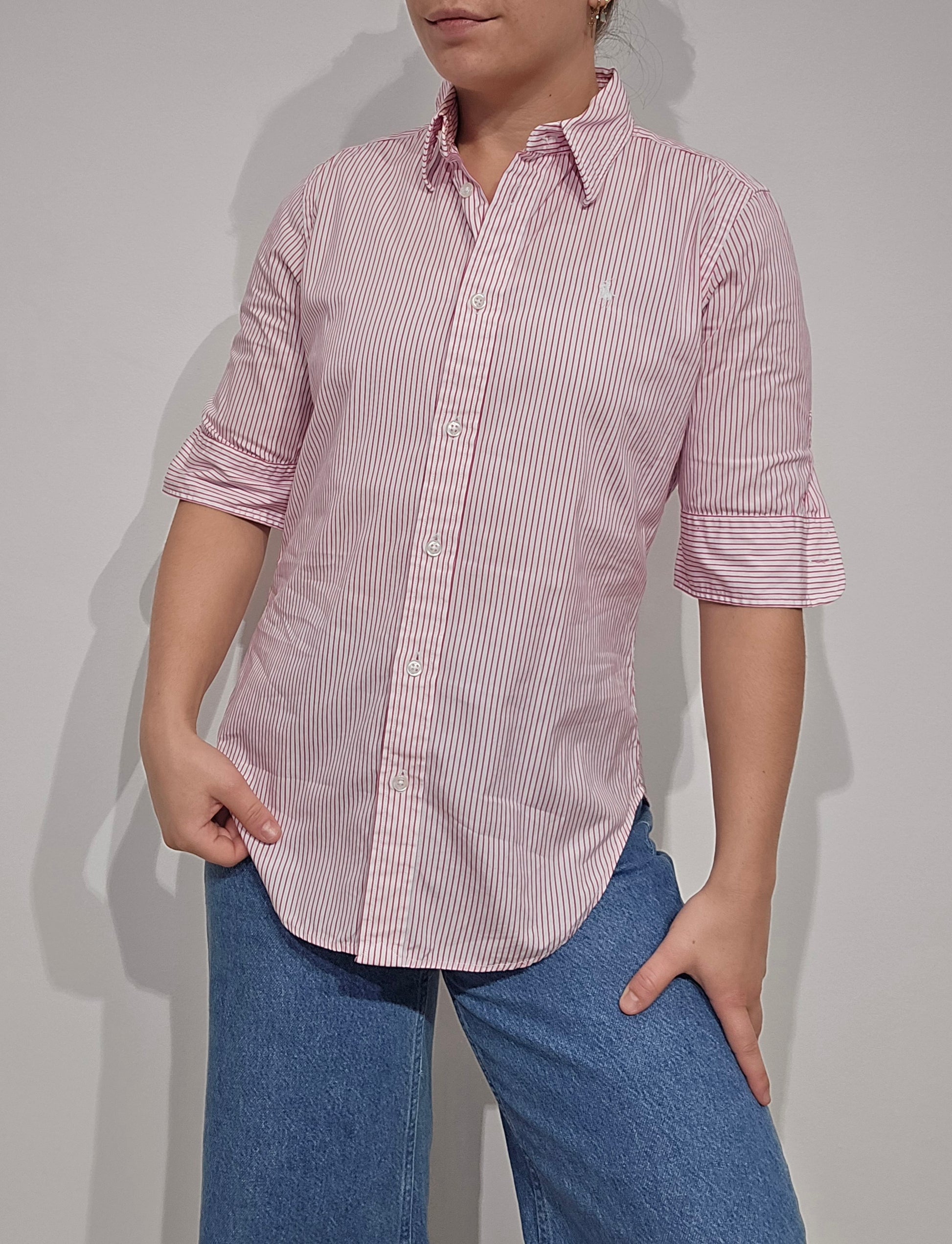 Article : Chemise silm fit à rayures rose, logo brodé blanc