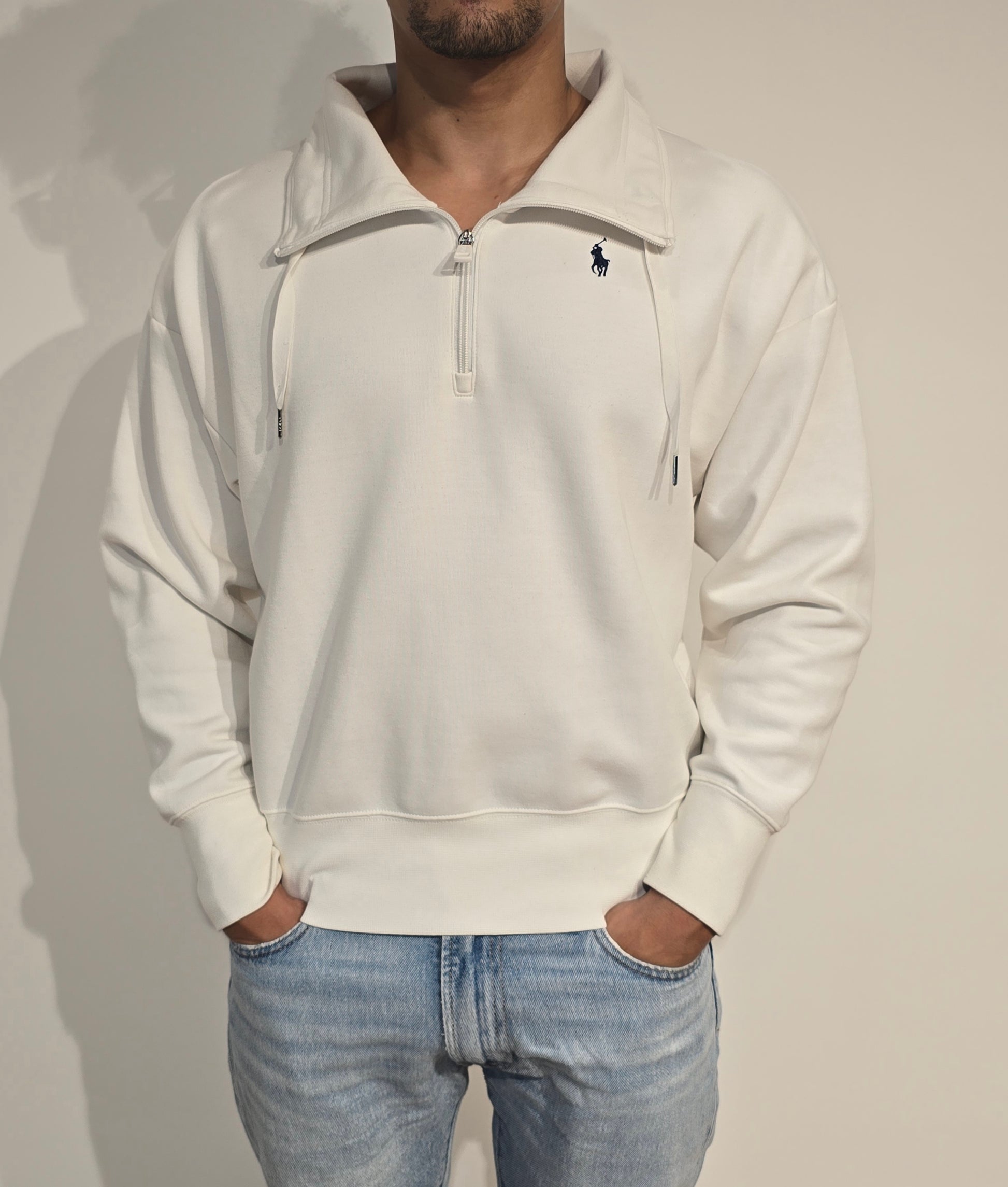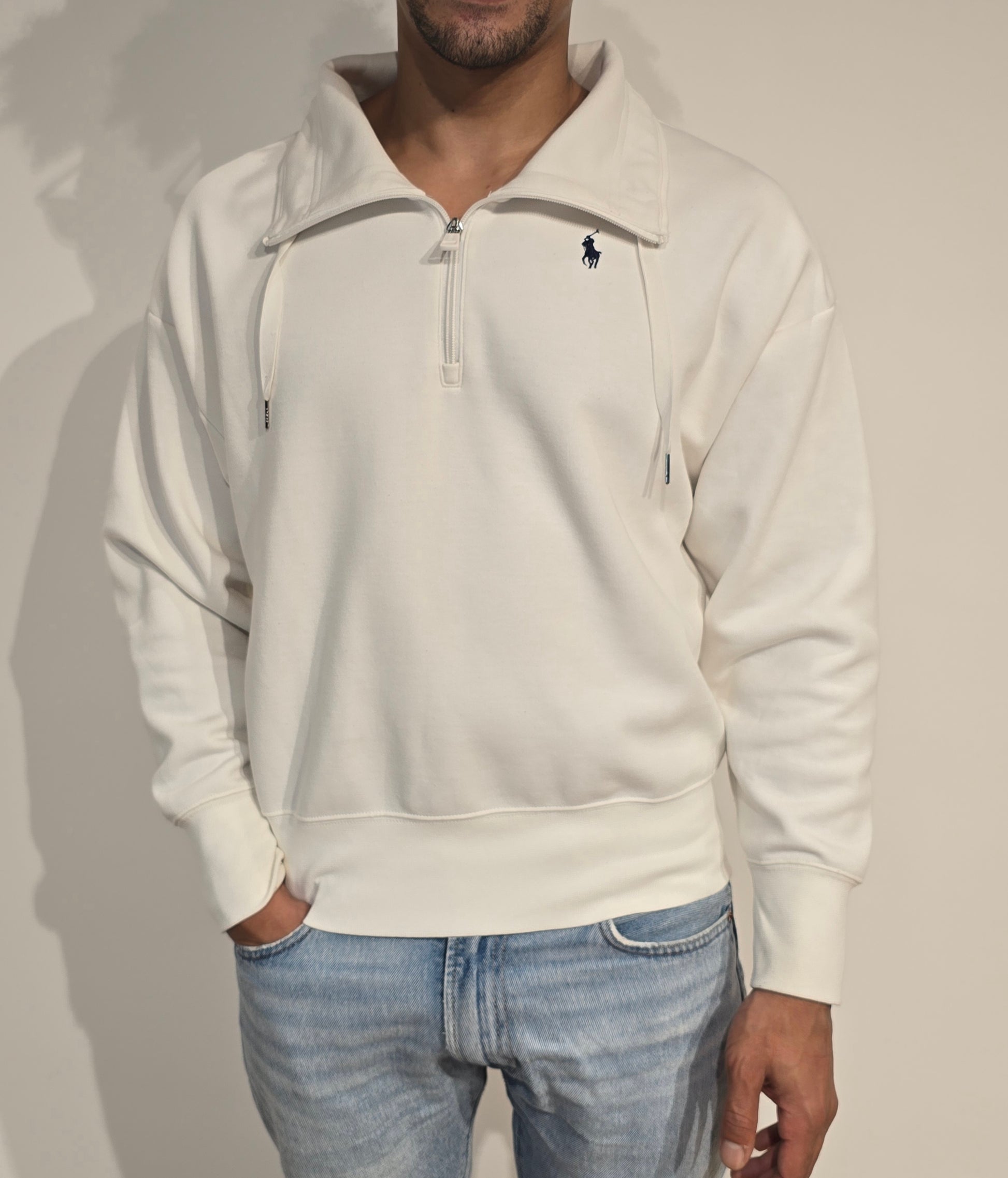Article : Pull camionneur blanc, logo brodé marine
