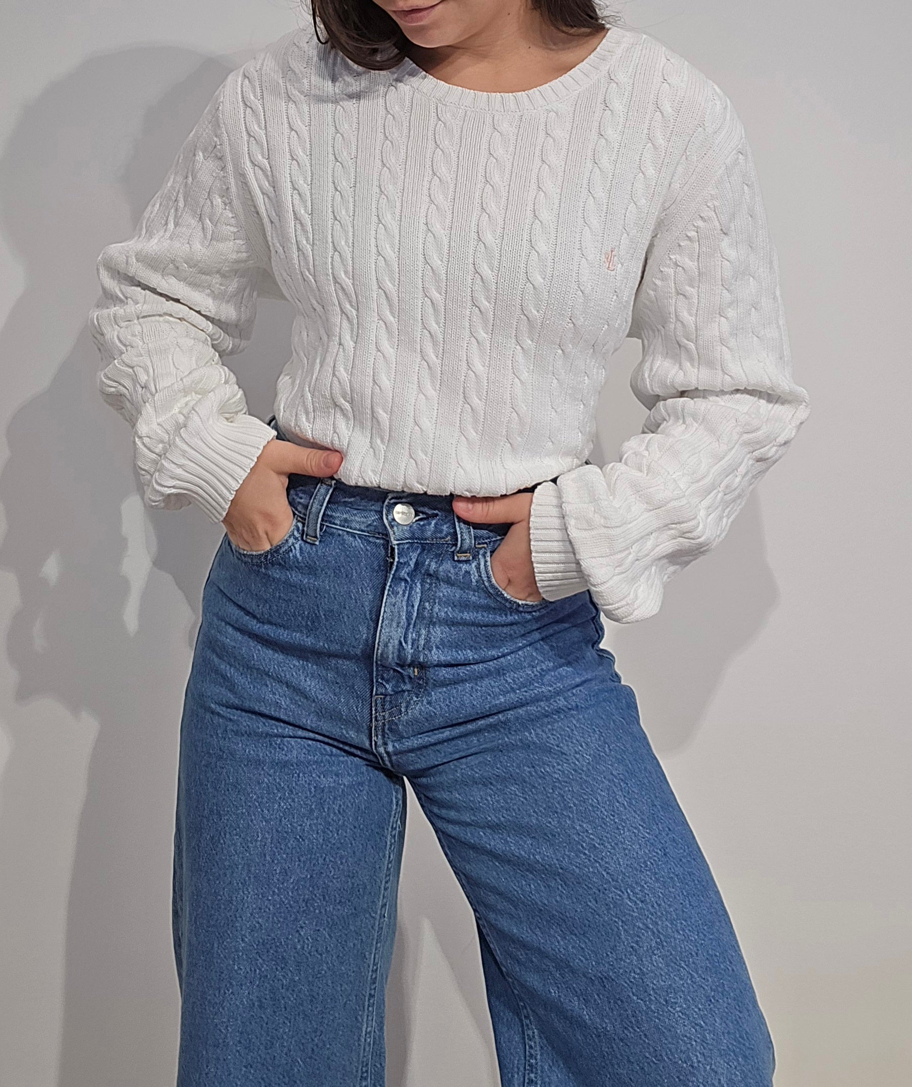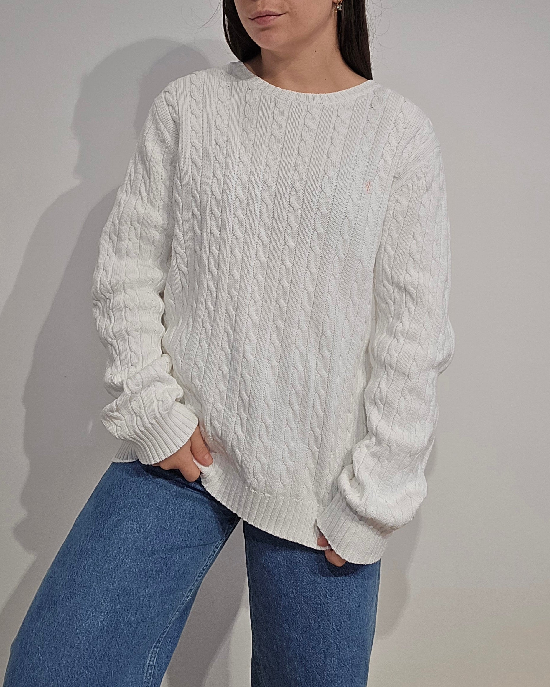 Pull col rond en maille torsadée blanc - XL