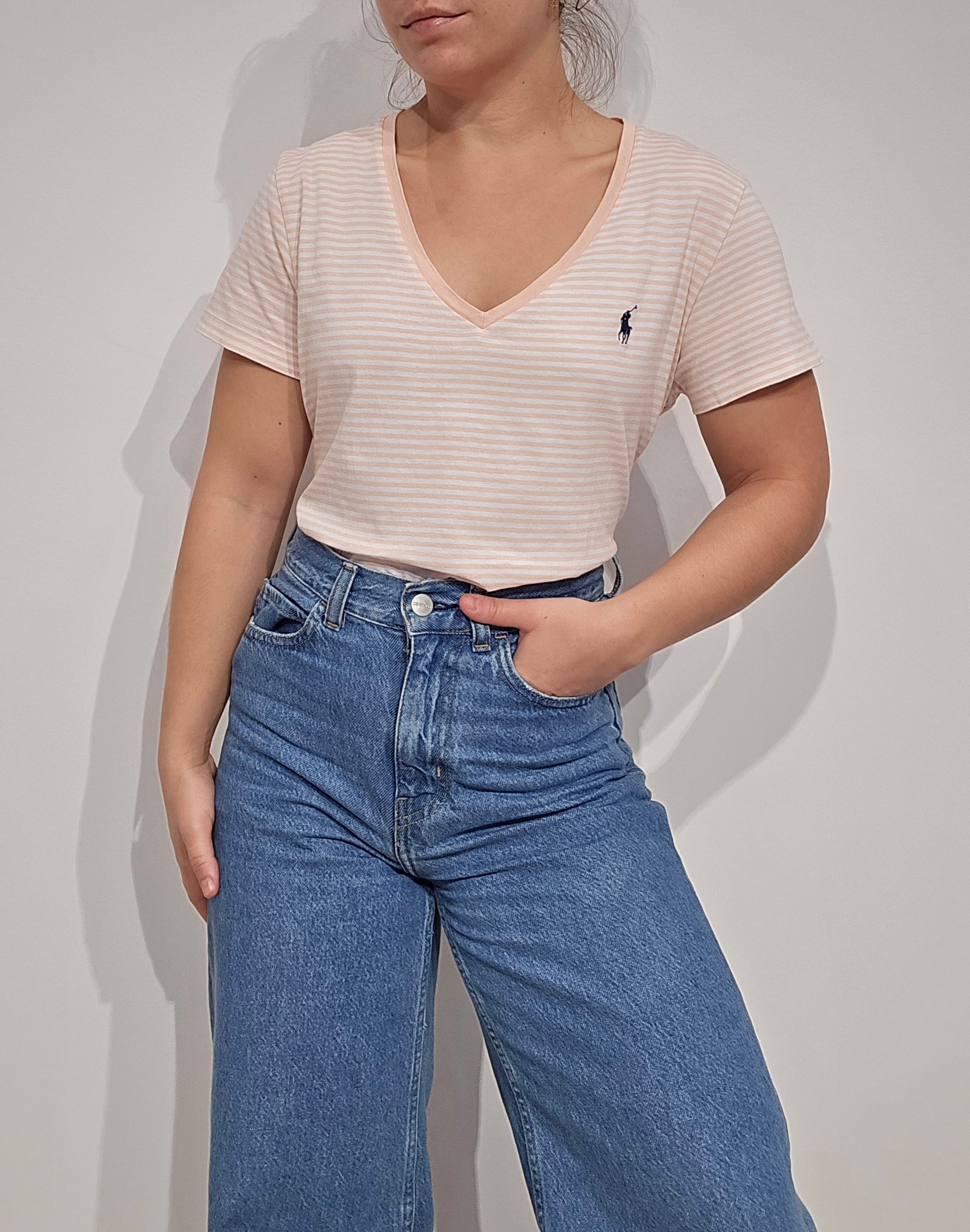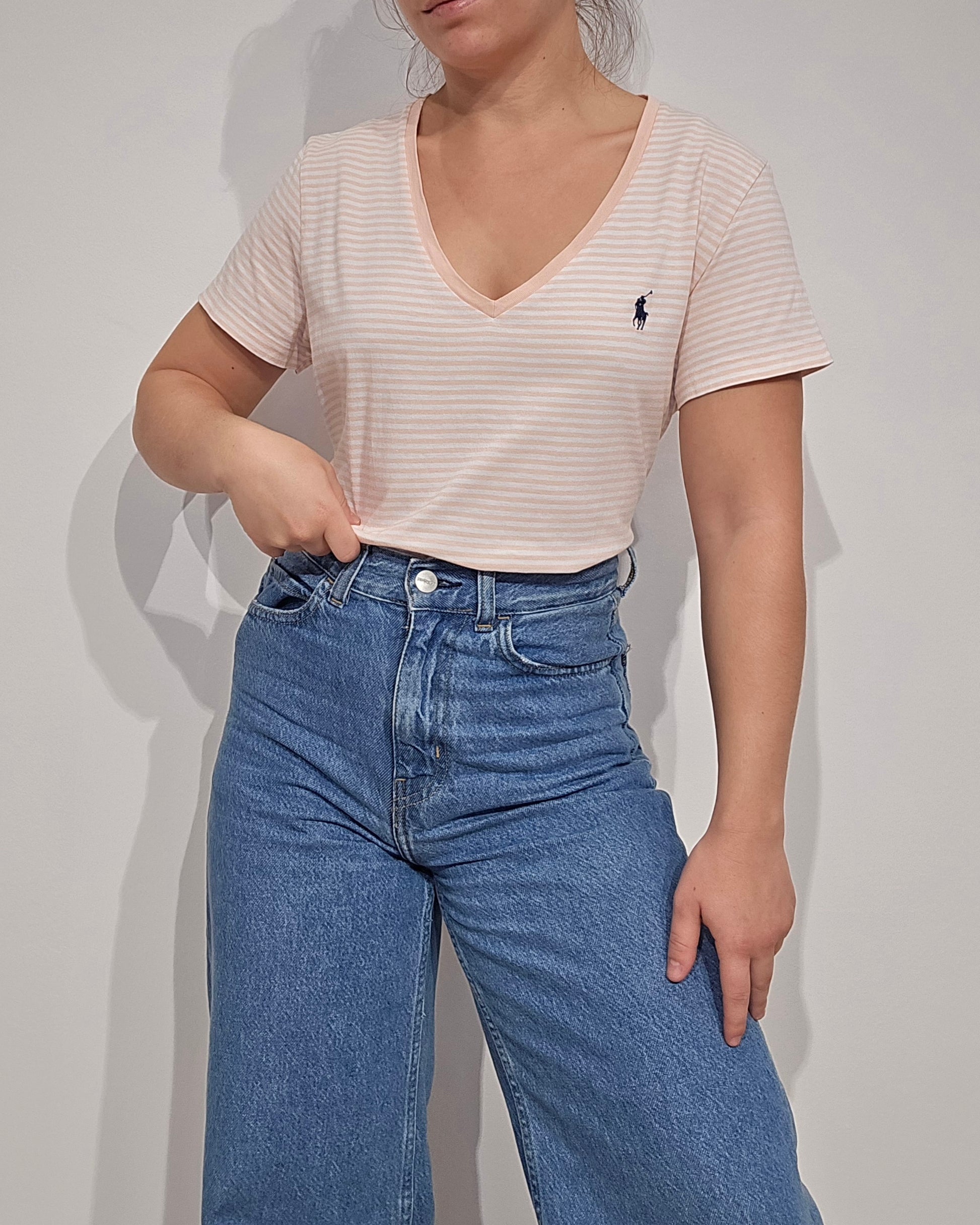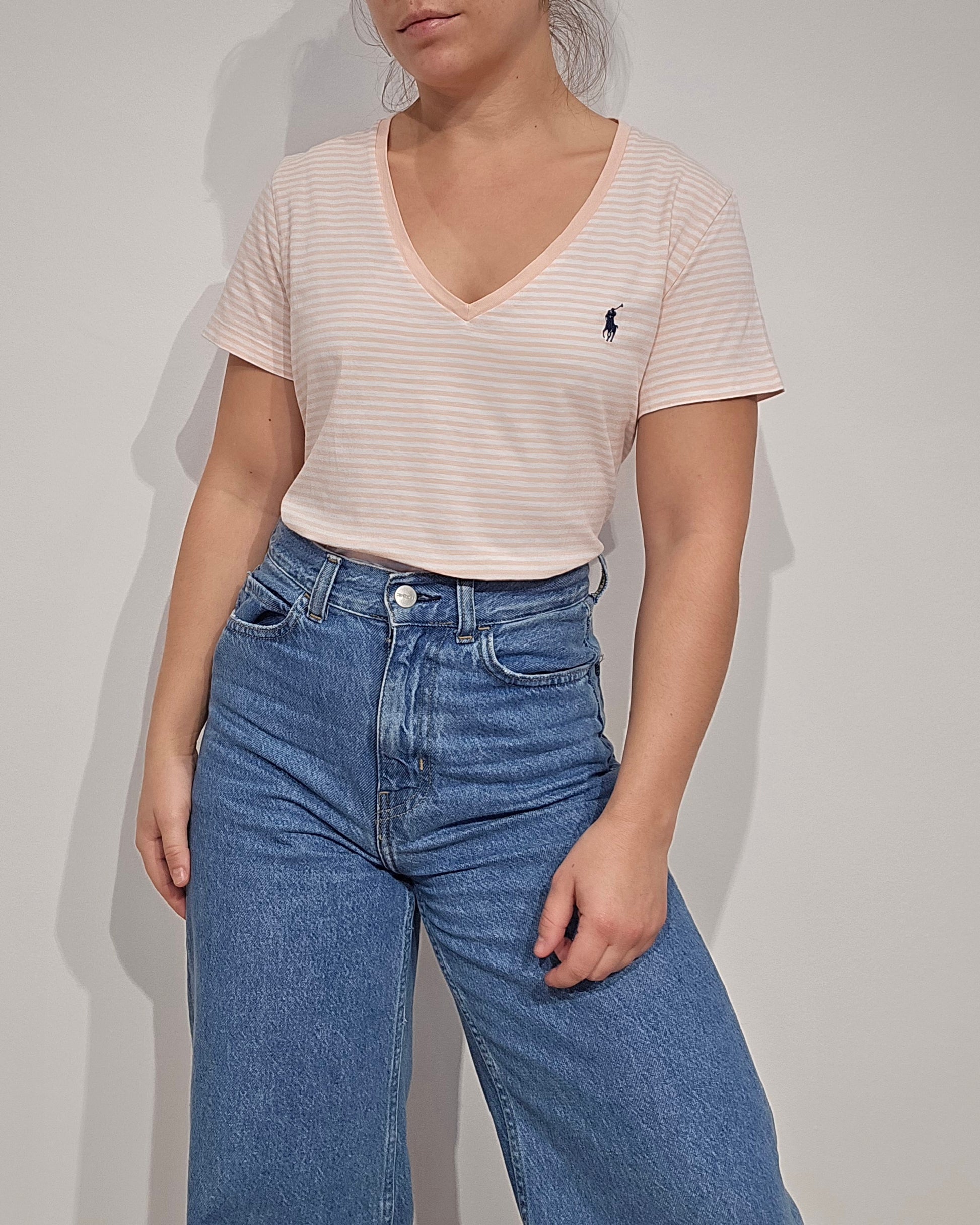 Tee-shirt à rayures abricot/blanc- M
