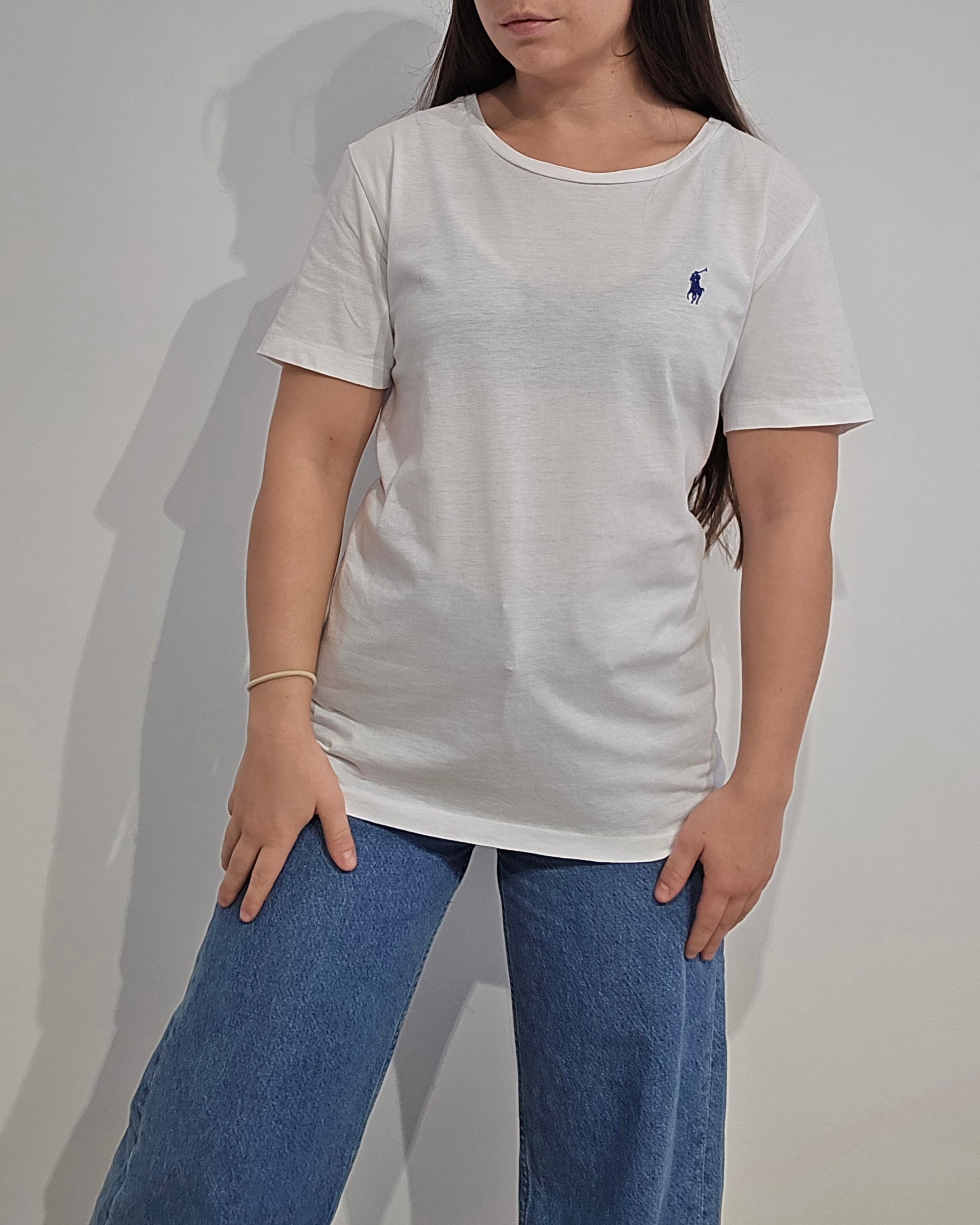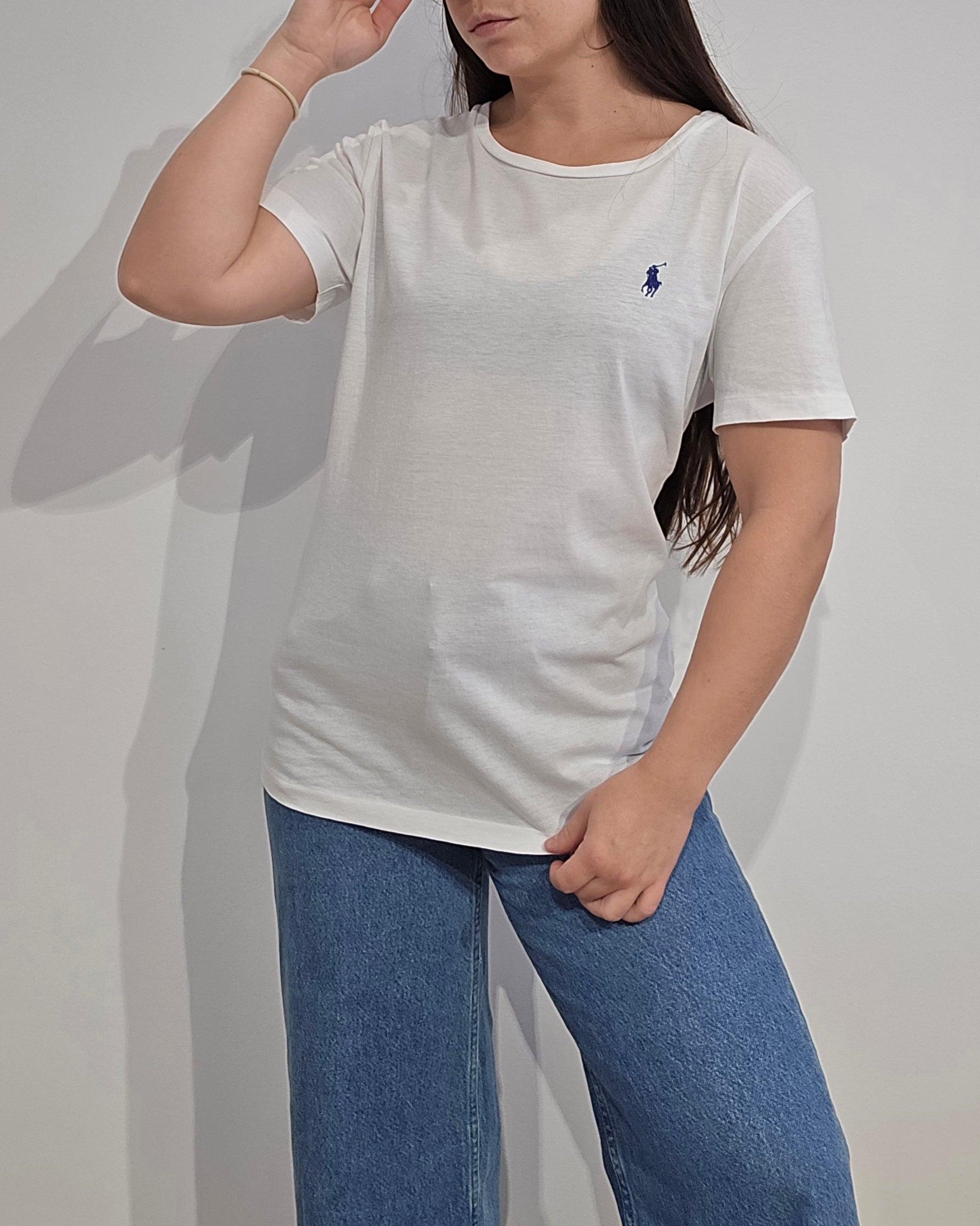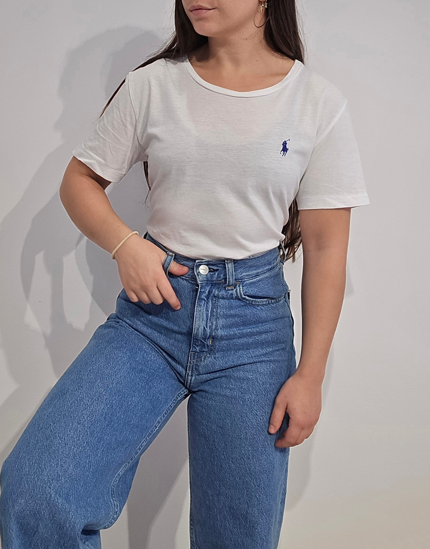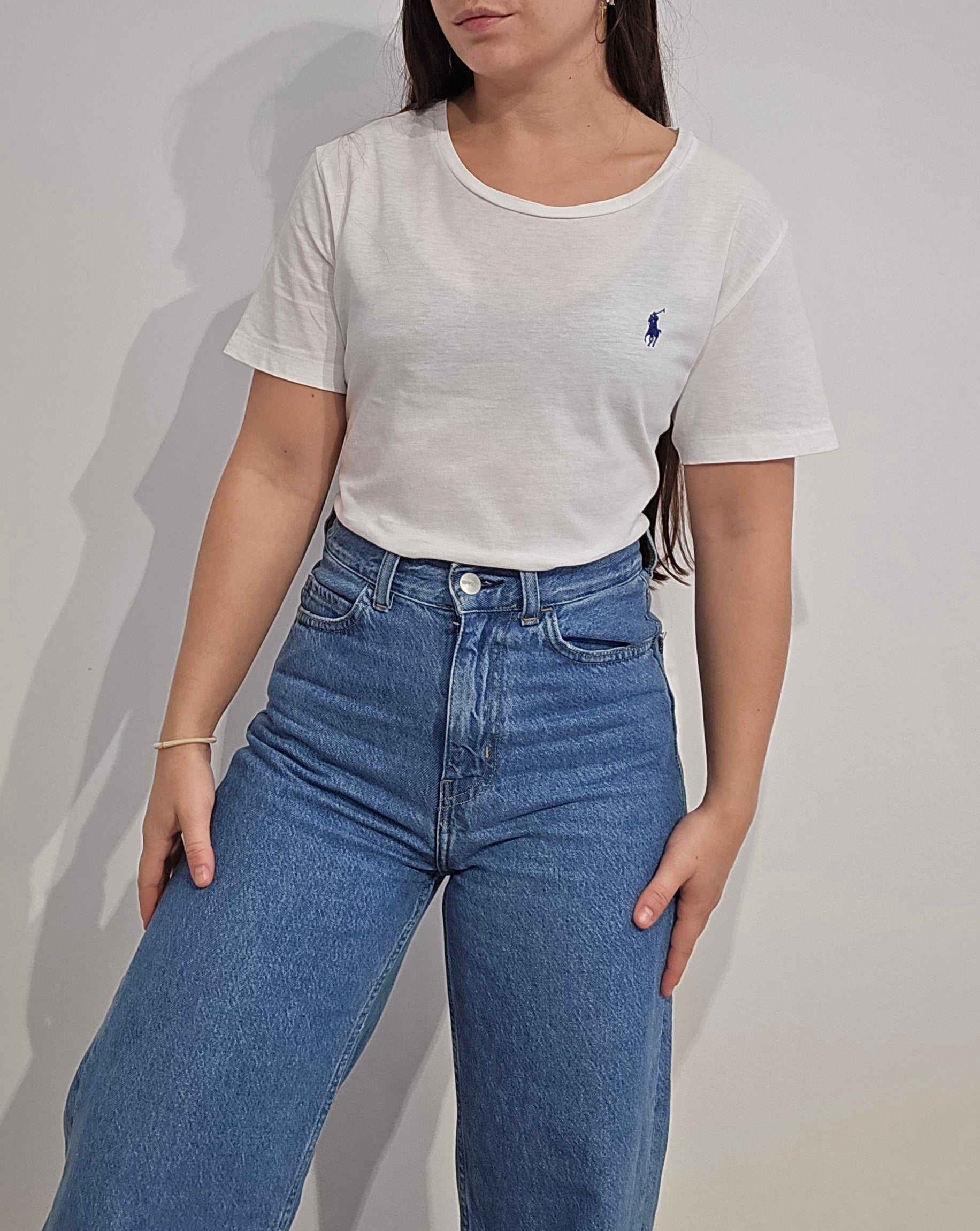 Article : Tee-shirt col rond blanc, logo brodé marine