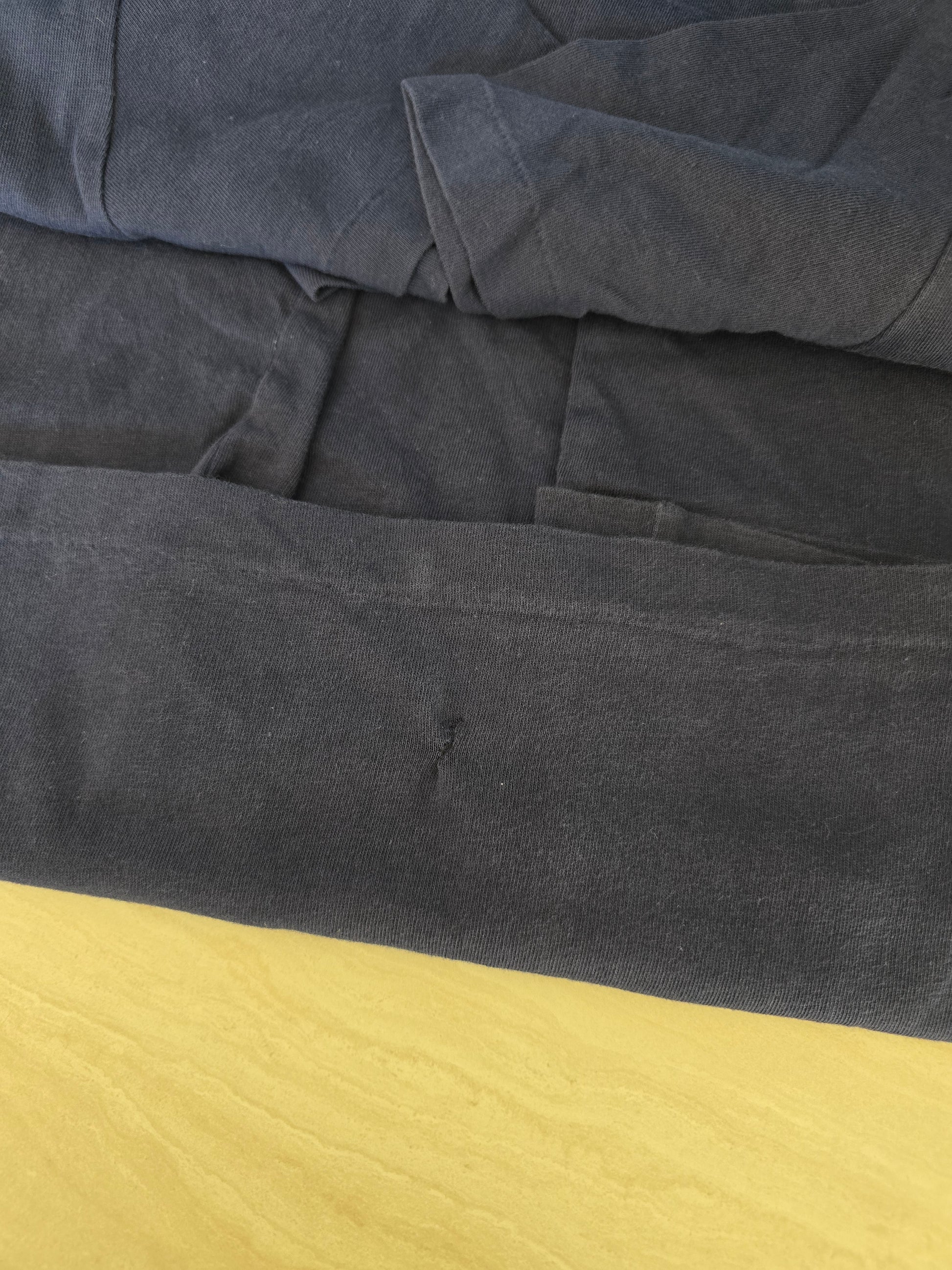⚠️ À noter : petit trou reprisé en bas du tee-shirt, visible sur la dernière photo (pris en compte dans le prix)