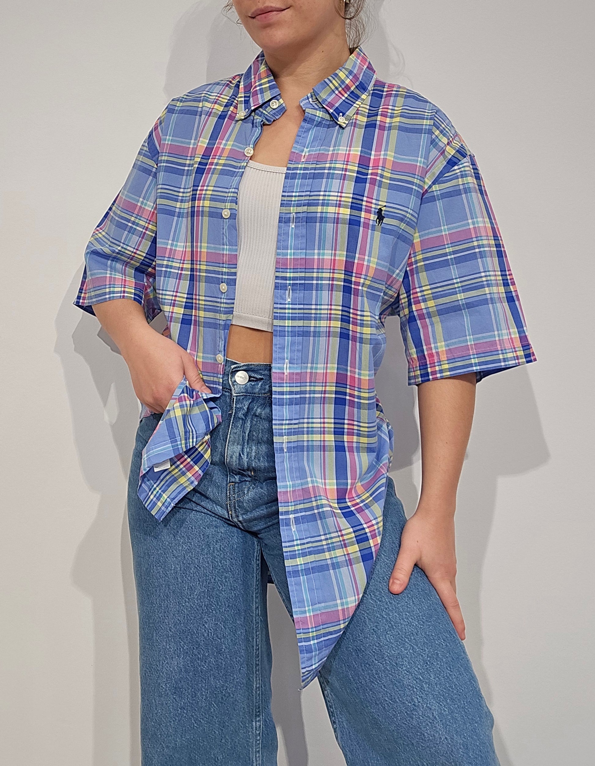 Article : Chemise mixte à carreaux multicolore, logo brodé marine