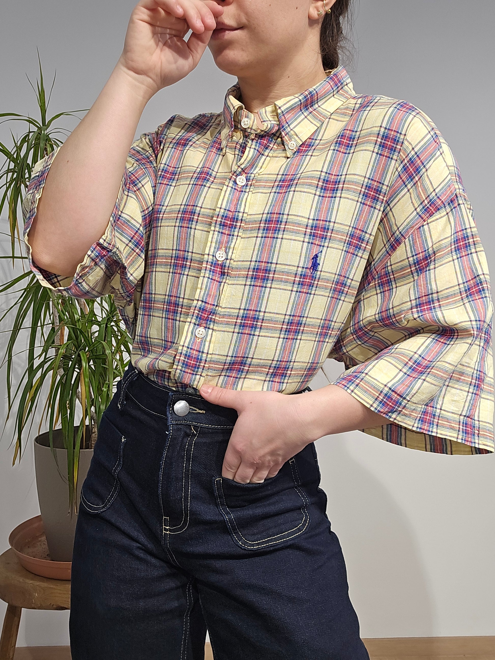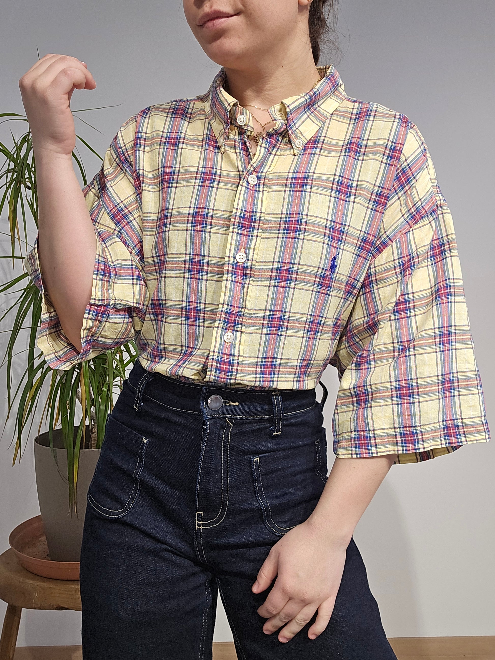 Article : Chemise à carreaux multicolore, logo brodé marine