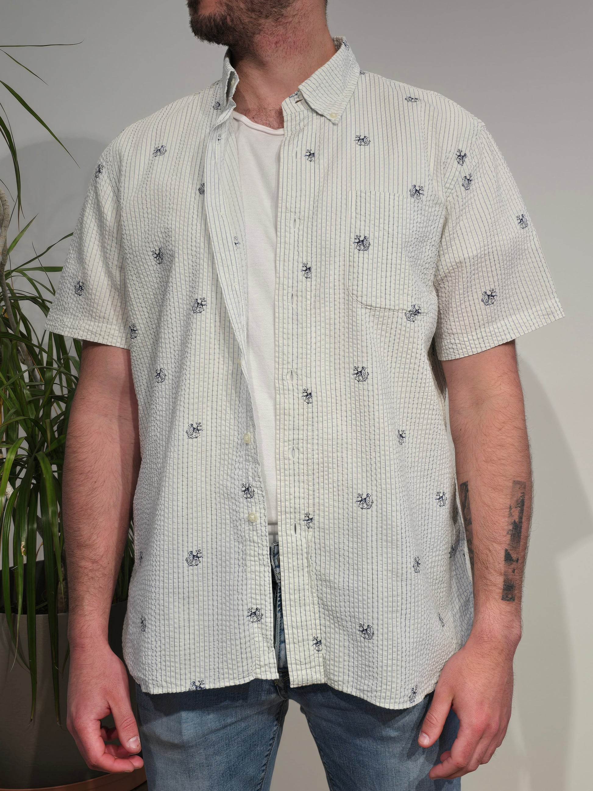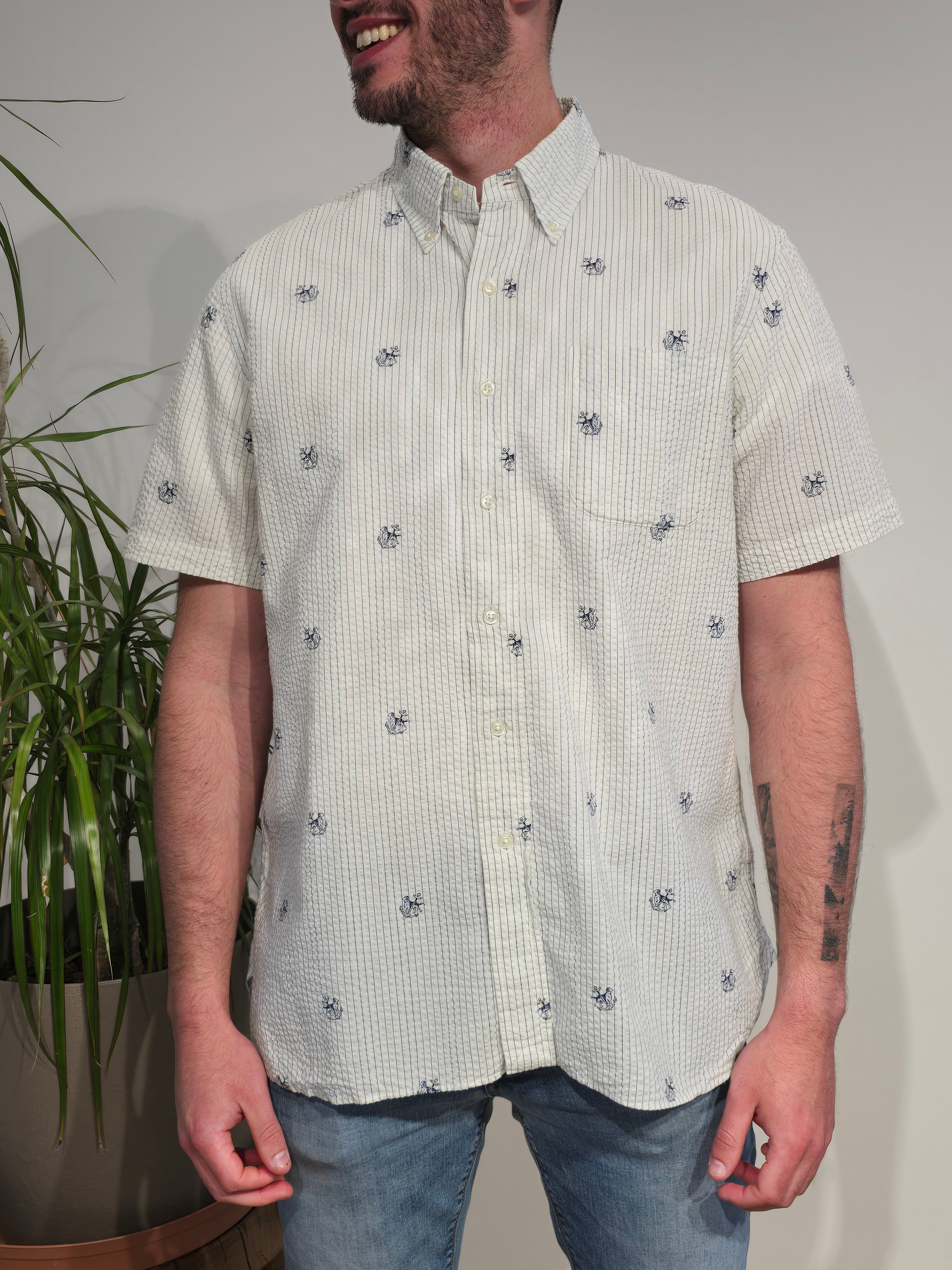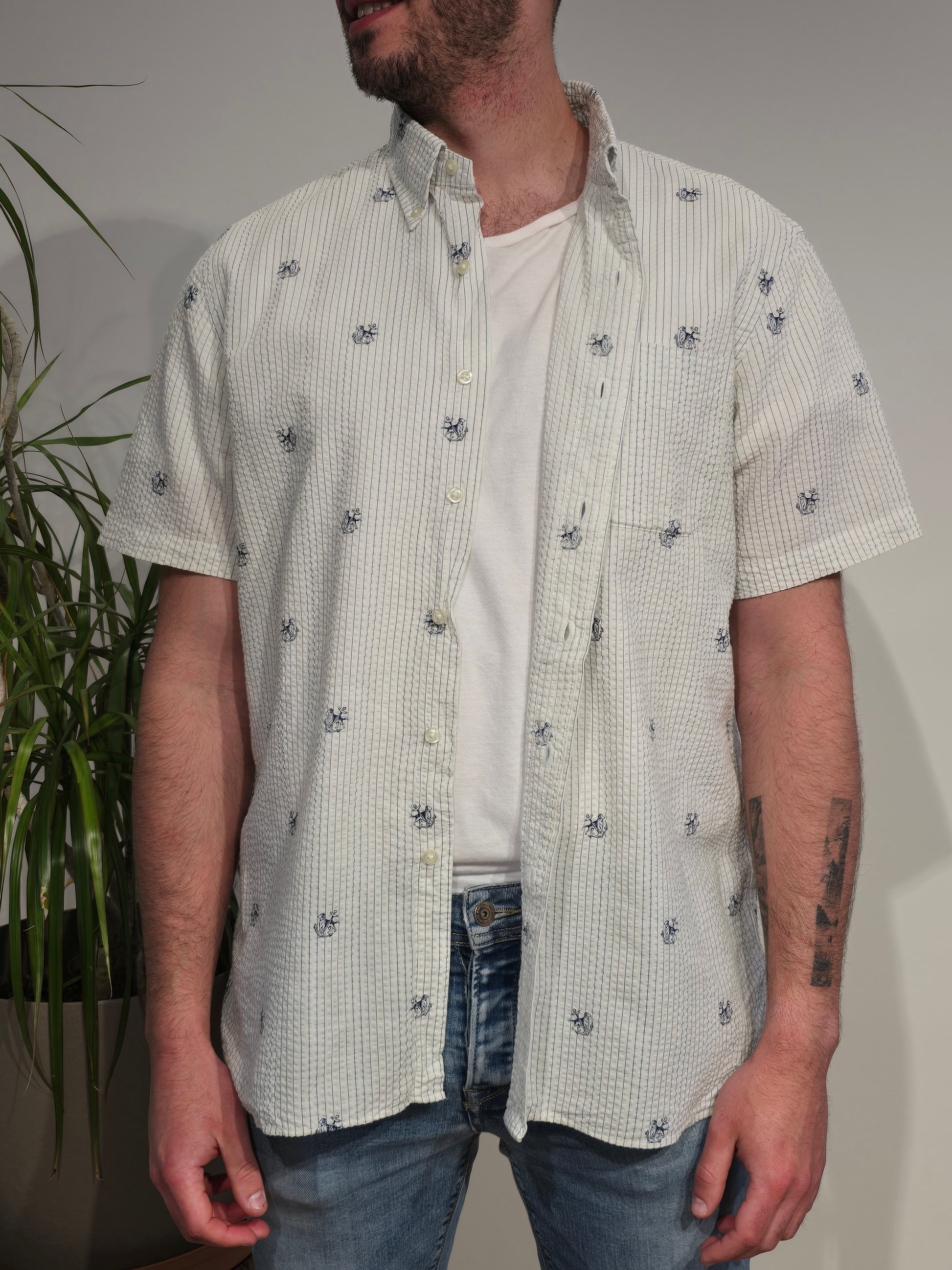 Taille : L/40, peut convenir a du M voir S oversize. Chemise coupe Seersuker