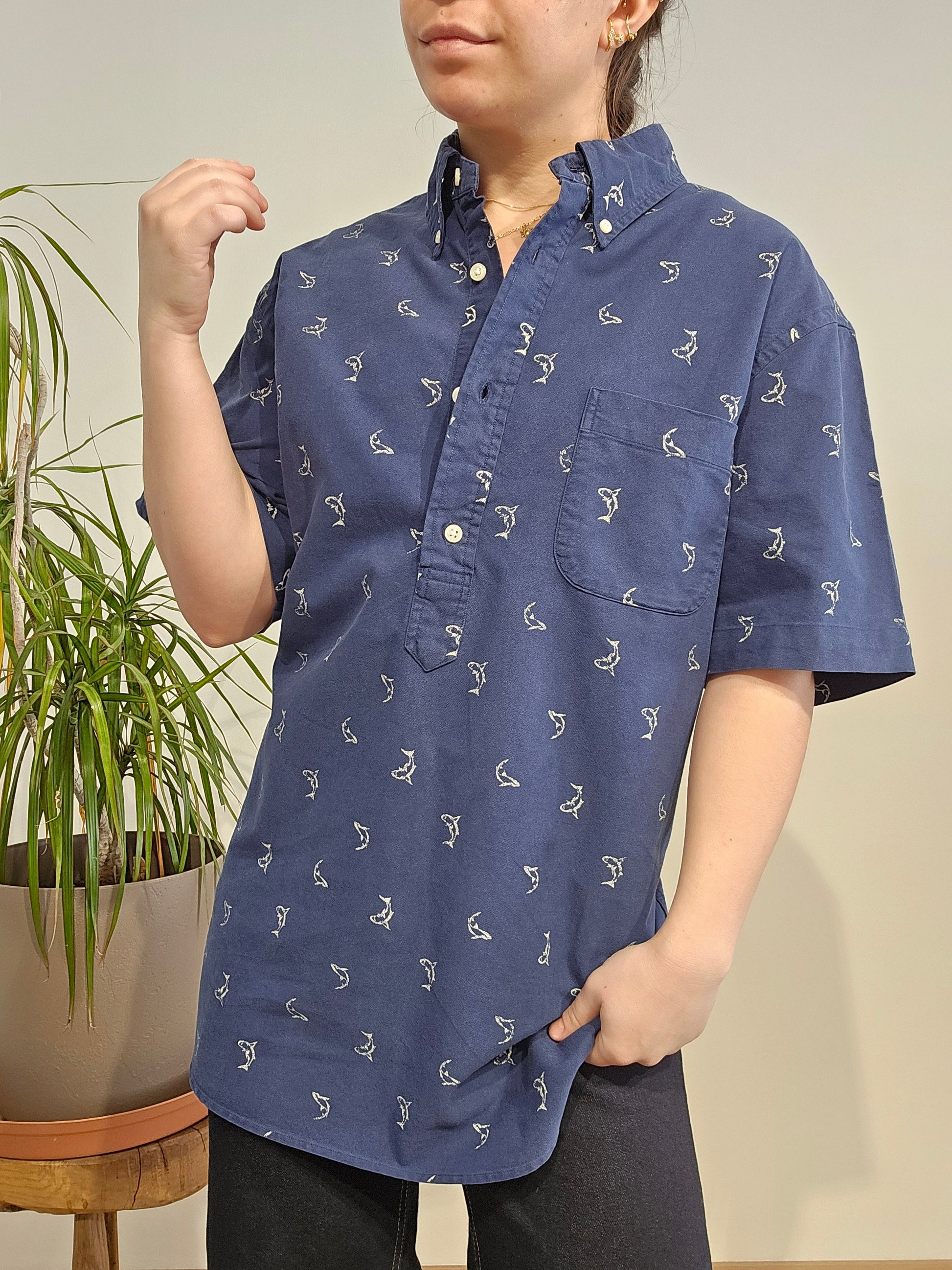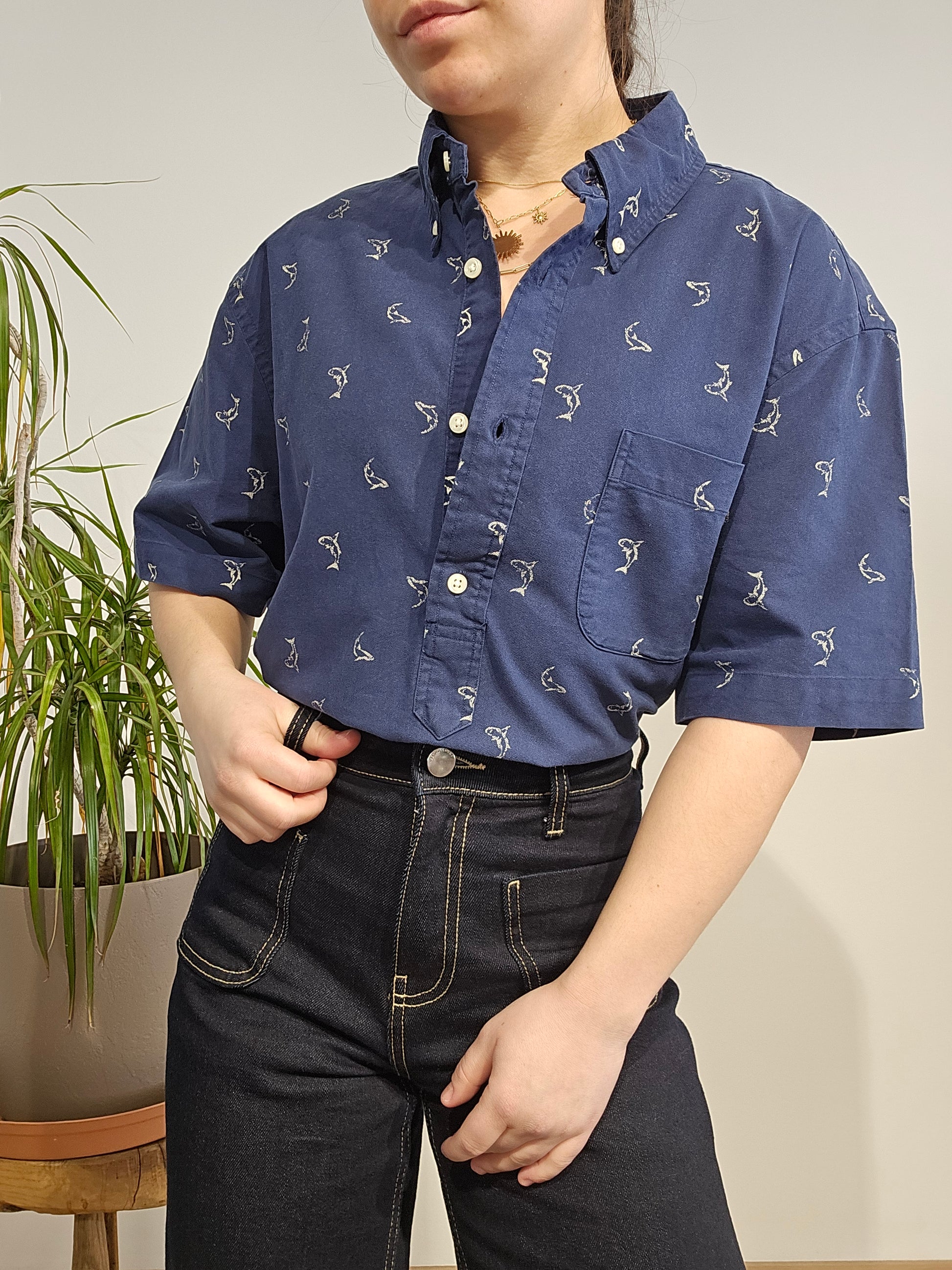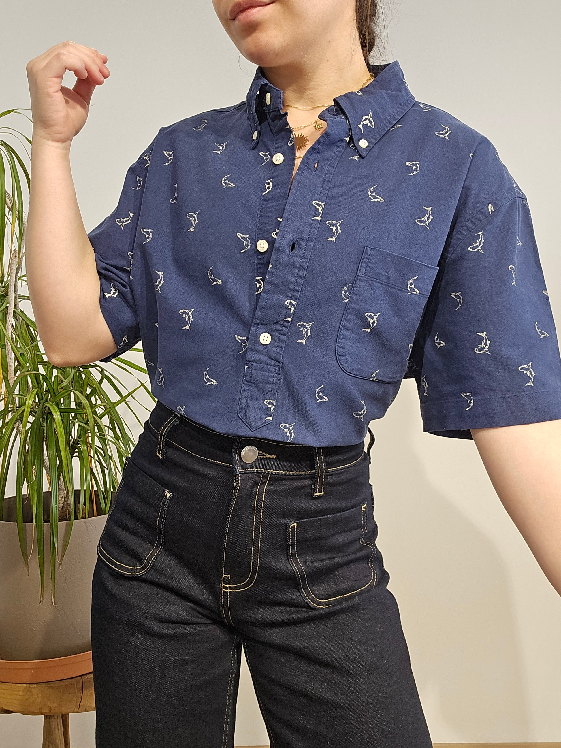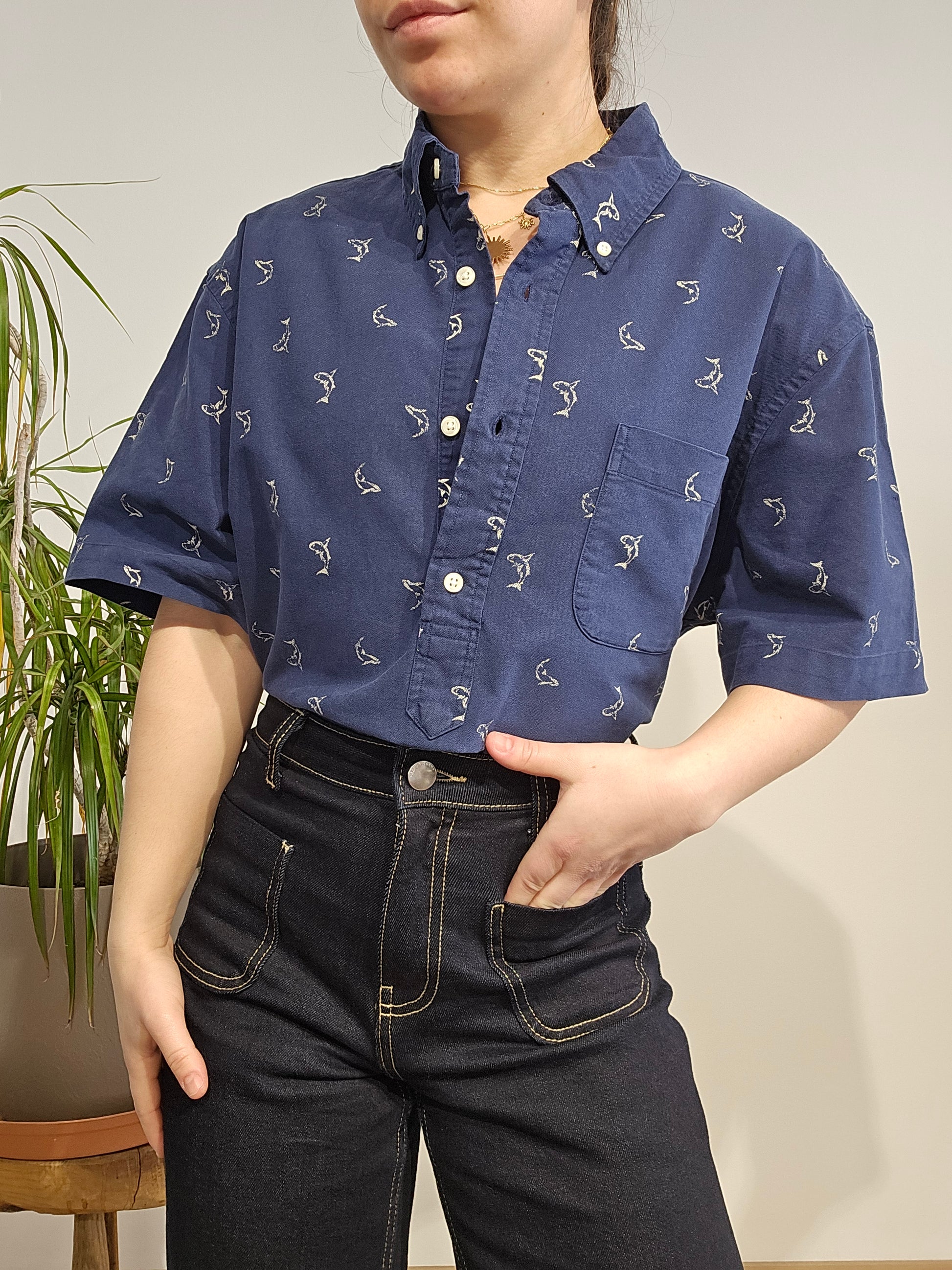 Article : Chemisier bleu marine à motifs
