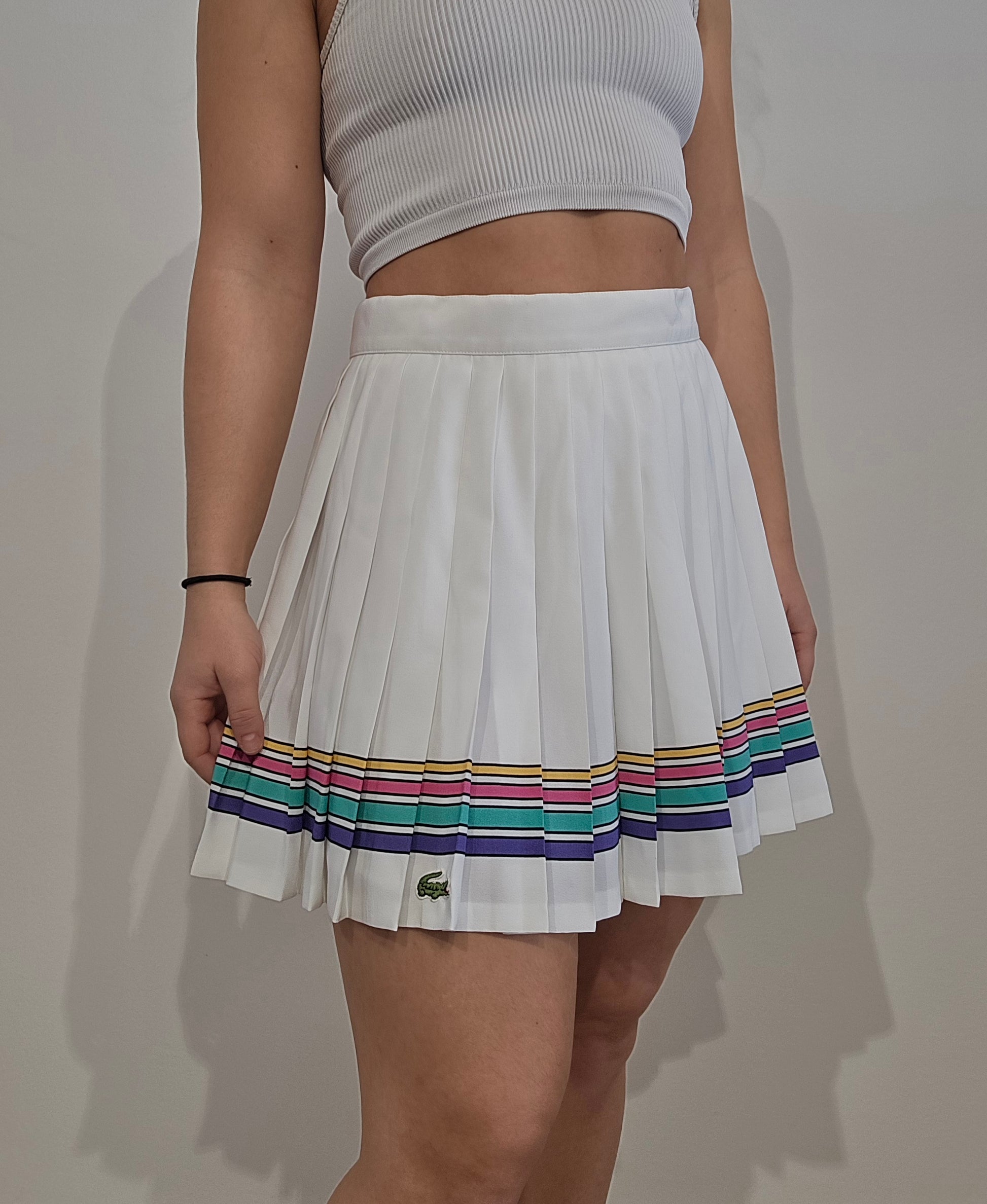 Article : Jupe de tennis blanche avec liseré multicolore des années 80'