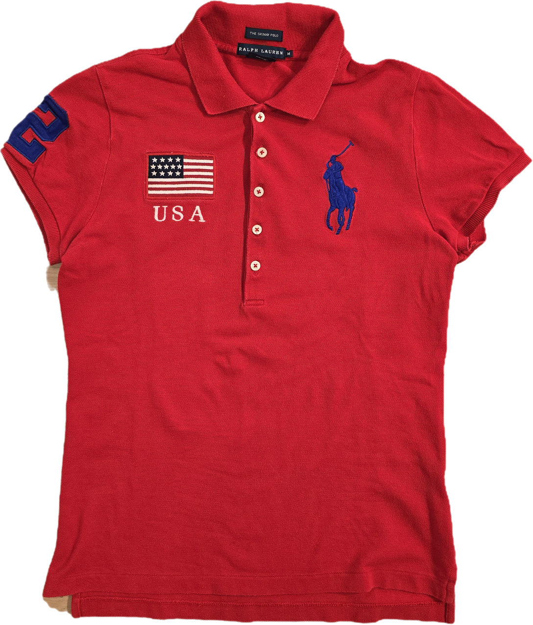 Article :  Polo bleu rouge, logo brodé marine