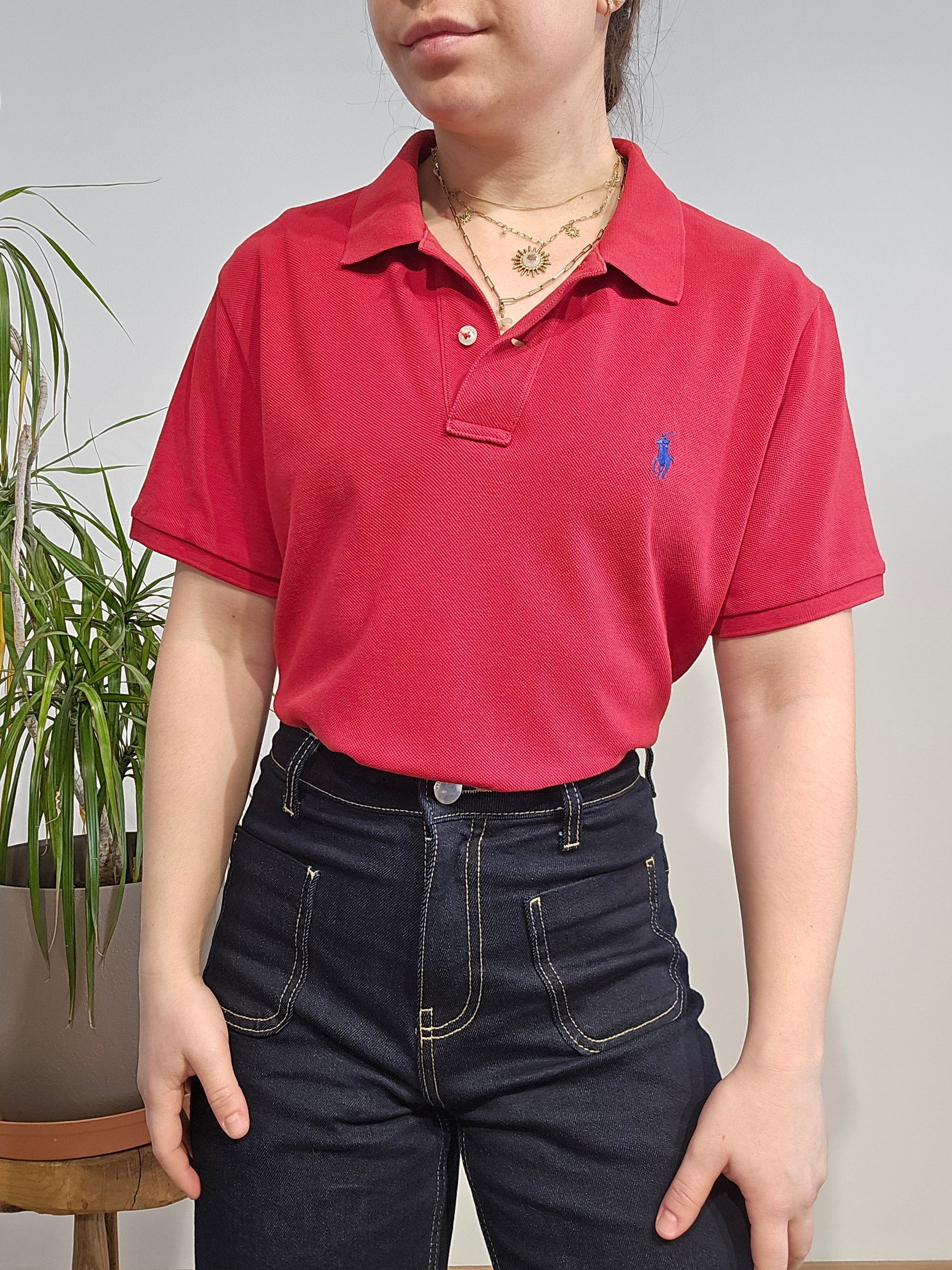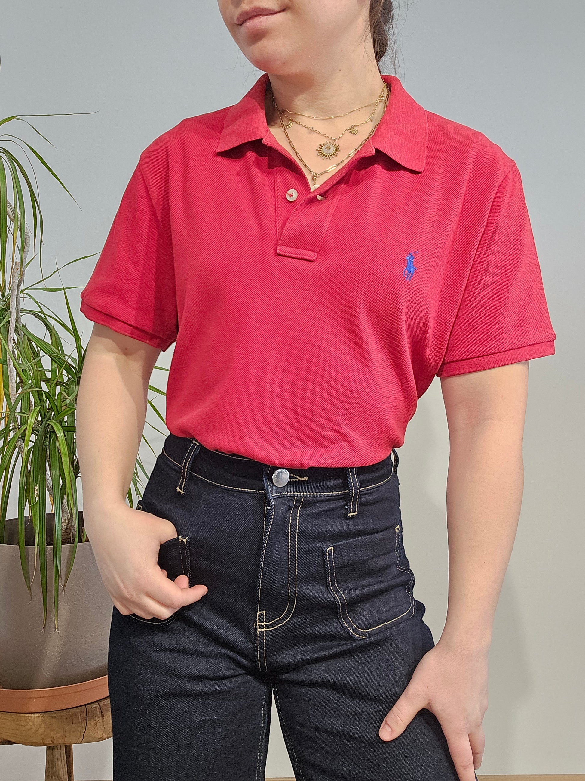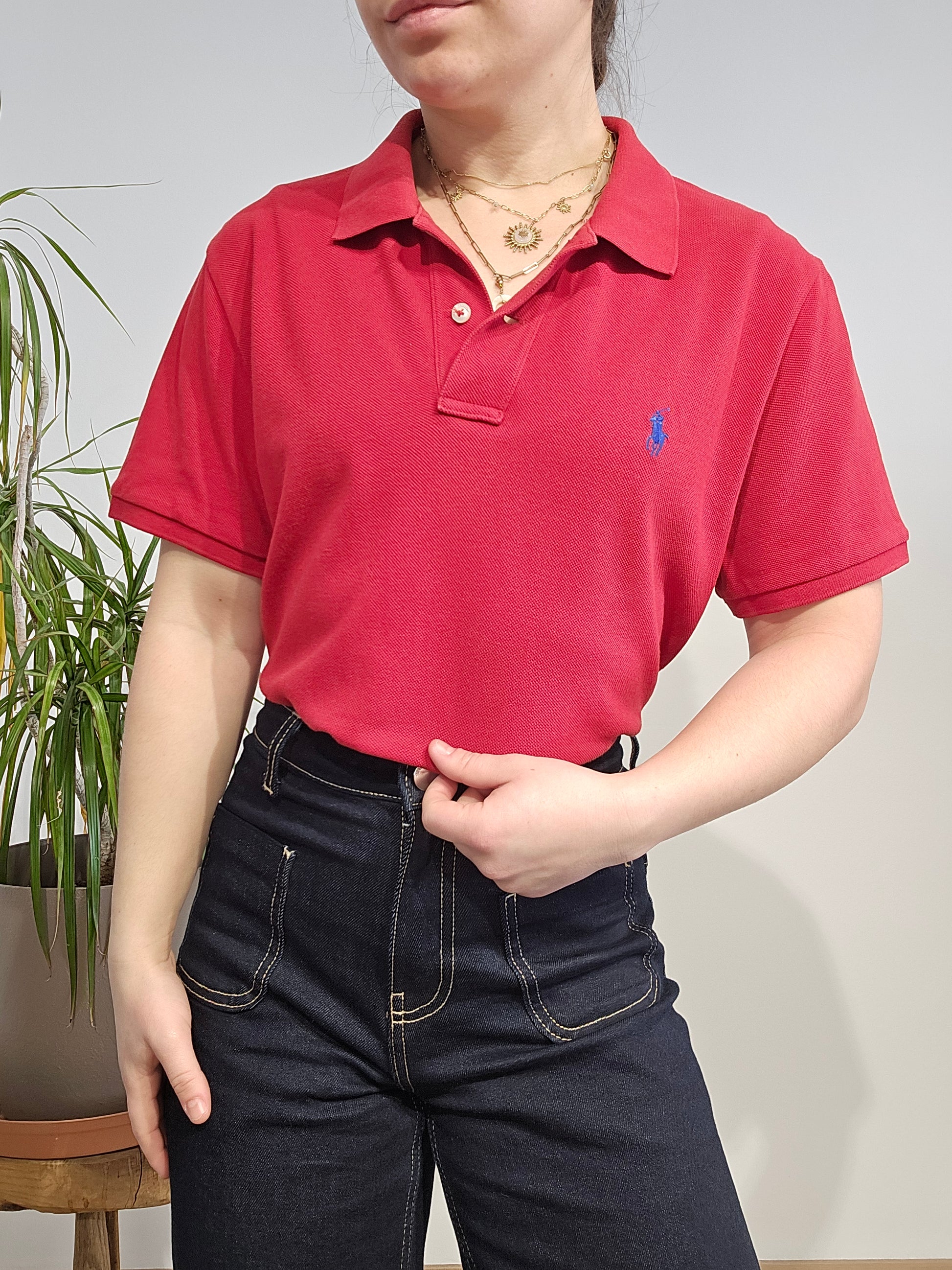Article :  Polo skinny fit rouge, logo bordé bleu