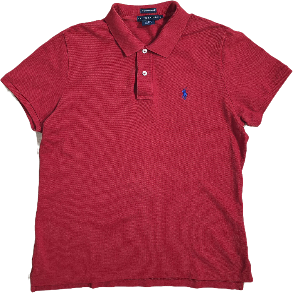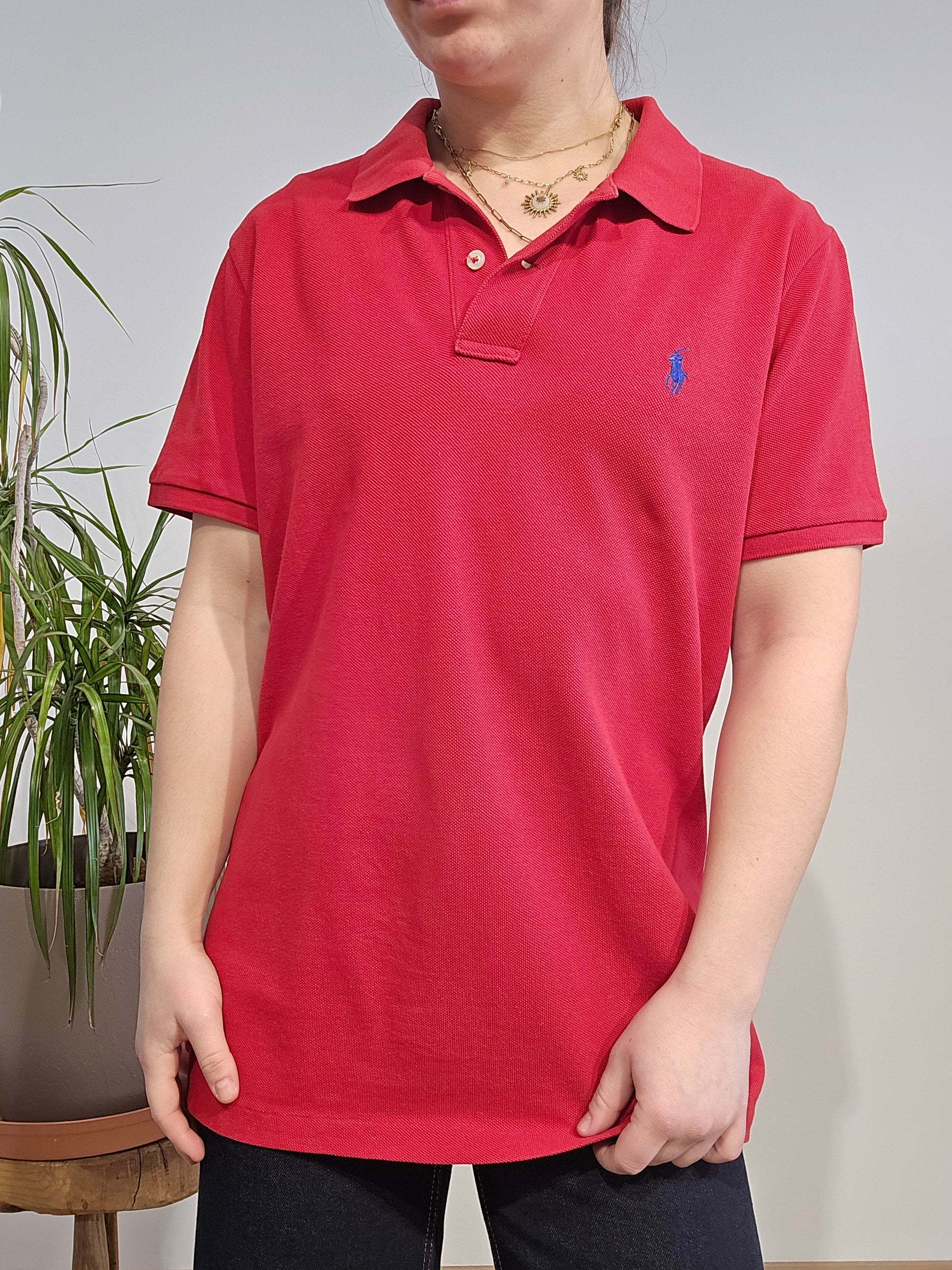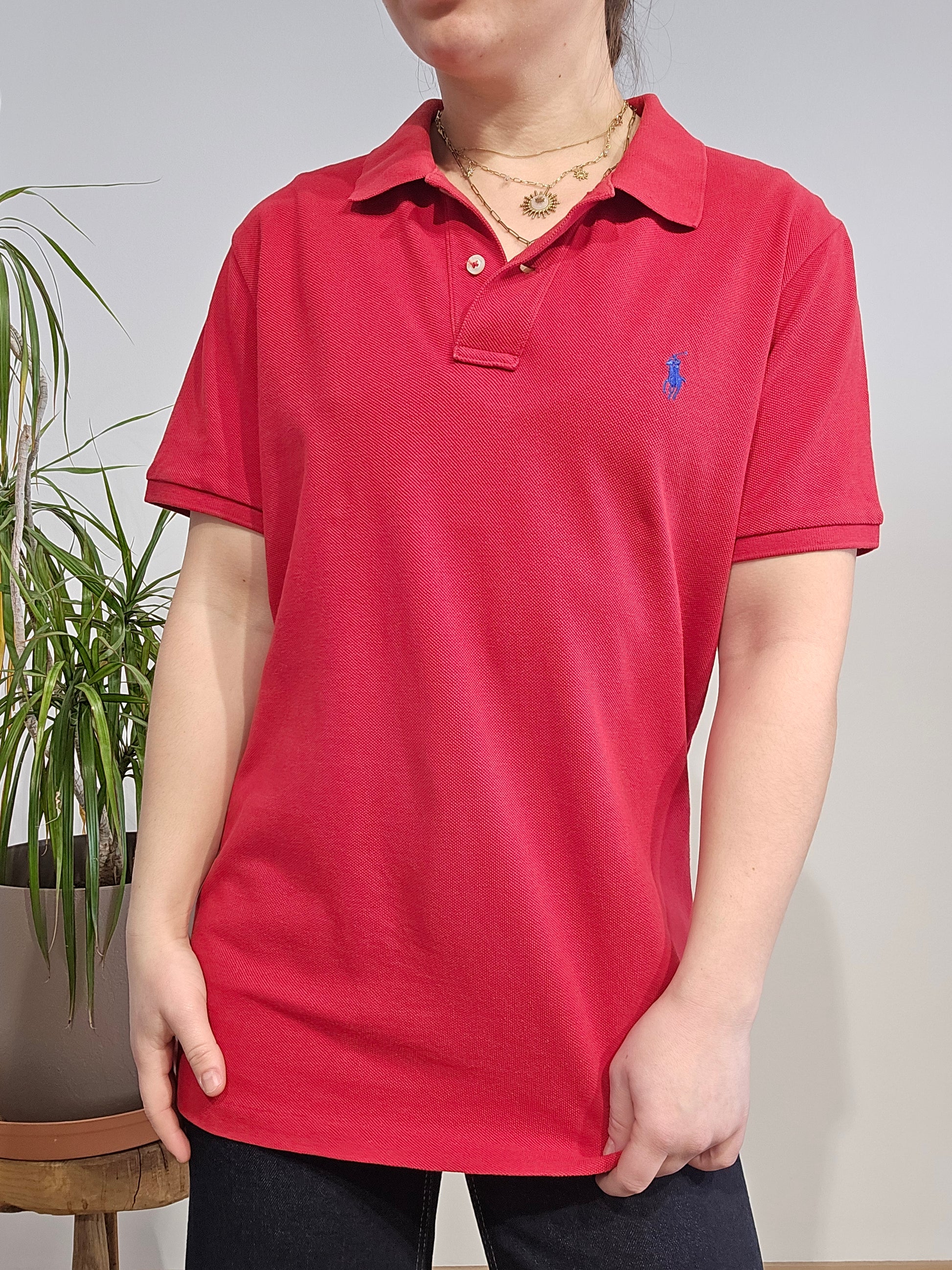 Article :  Polo skinny fit rouge, logo bordé bleu