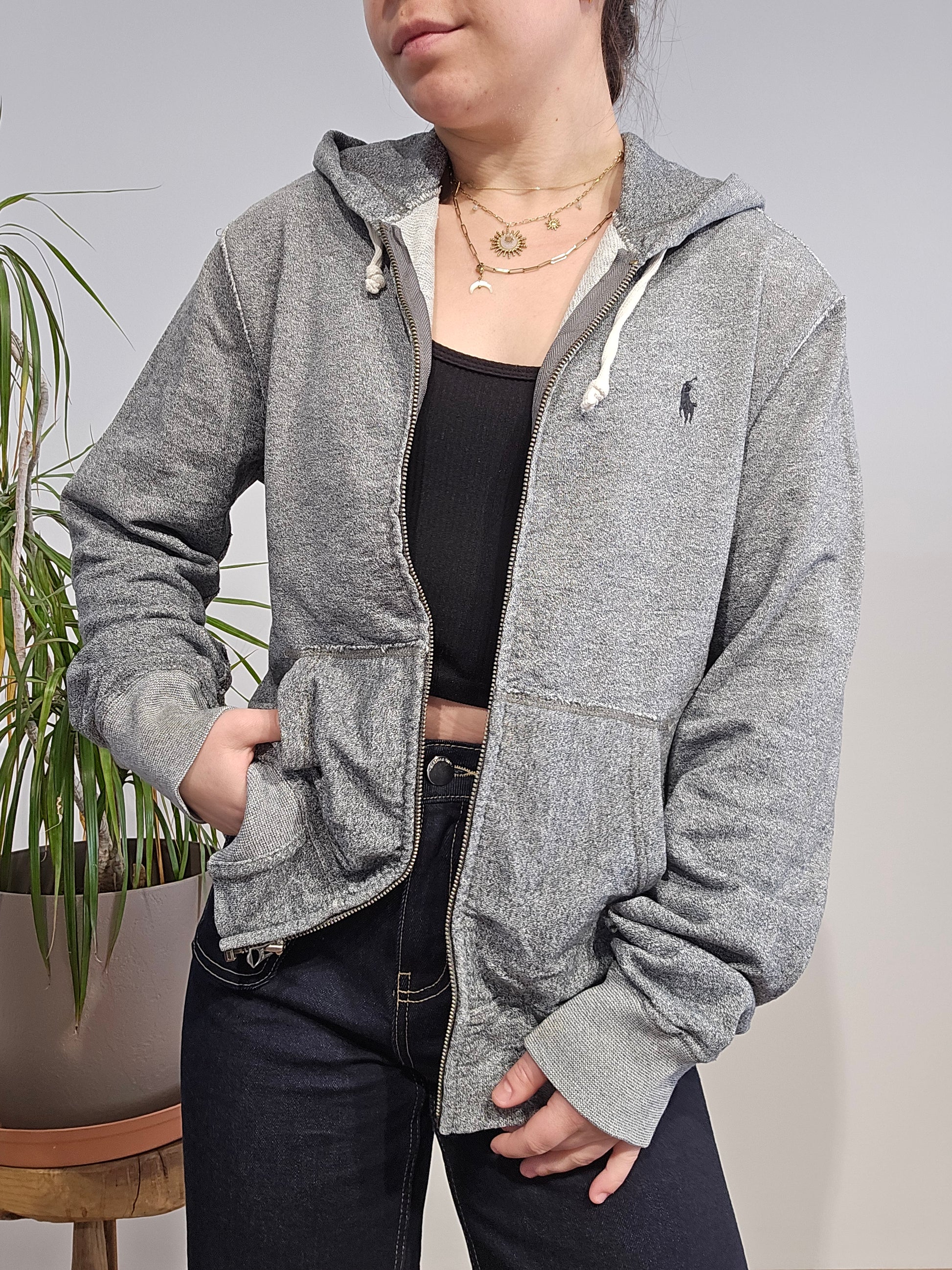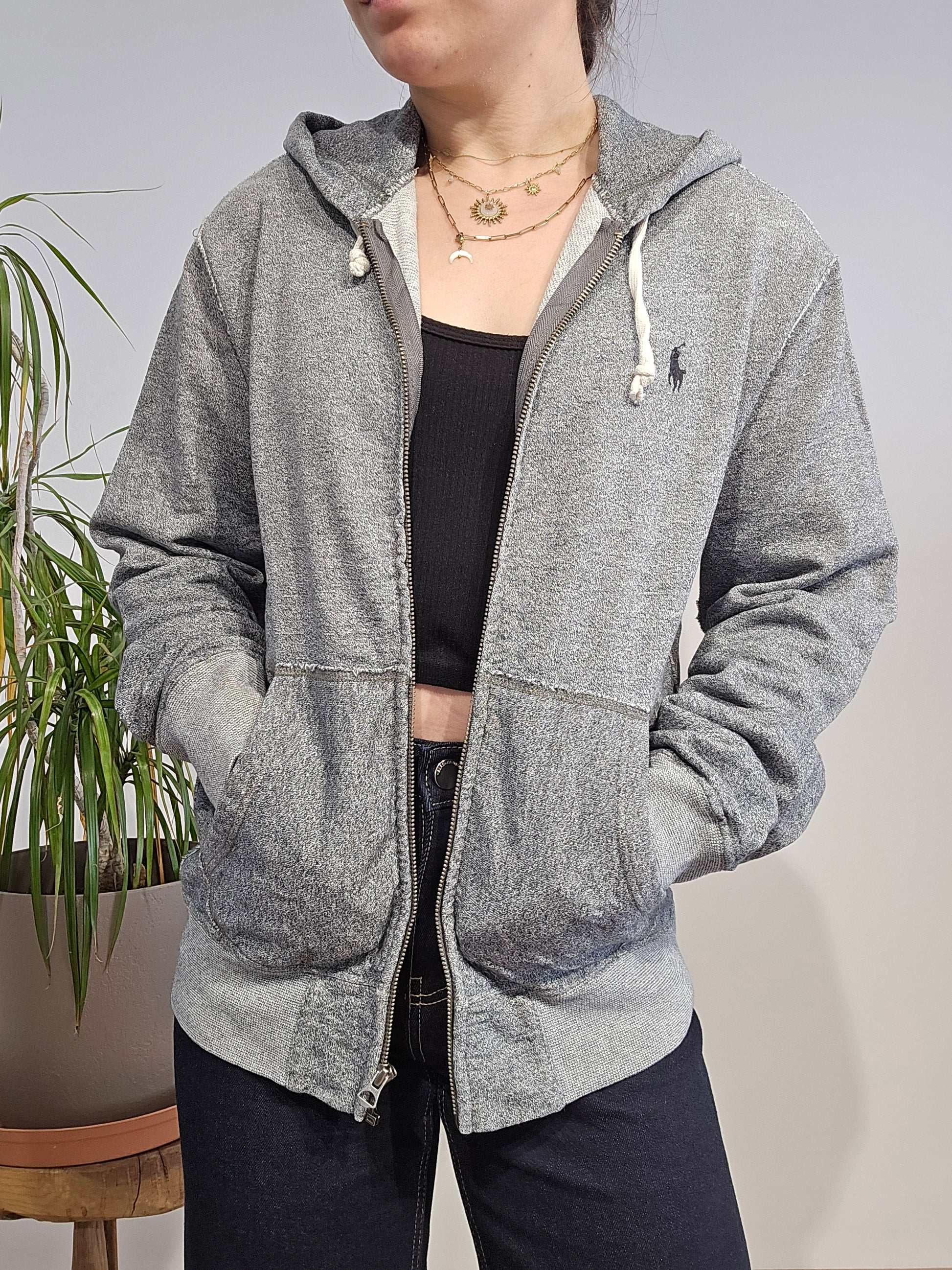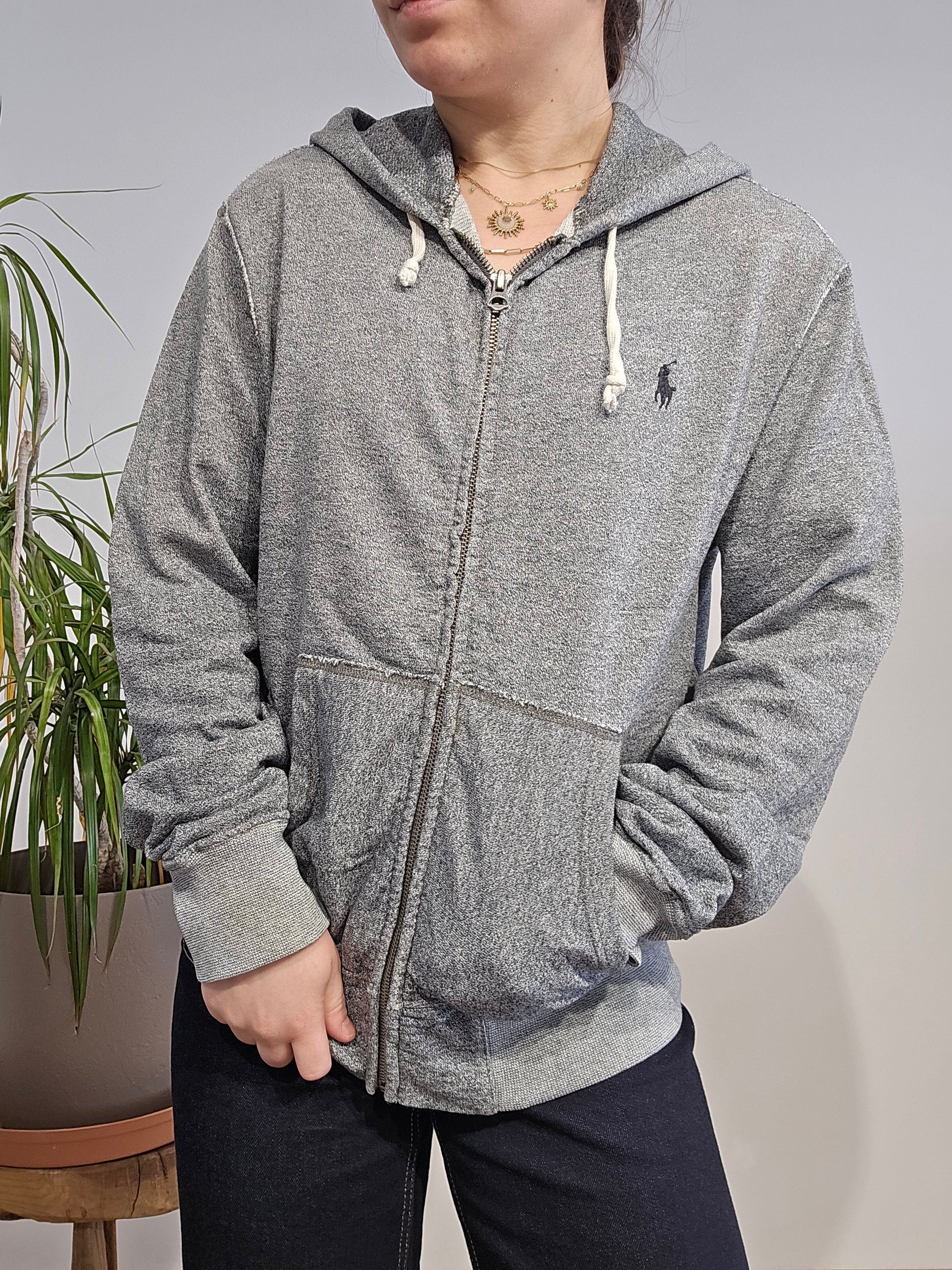 Article : Sweat à capuche gris mélangé, logo brodé noir