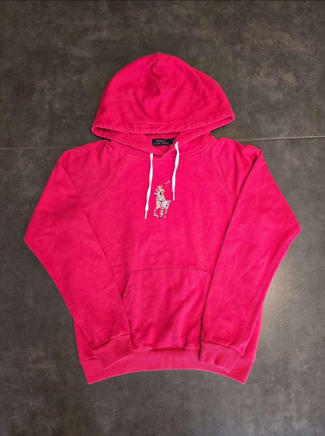 Article : Sweat à capuche rouge, big logo brodé multicolore