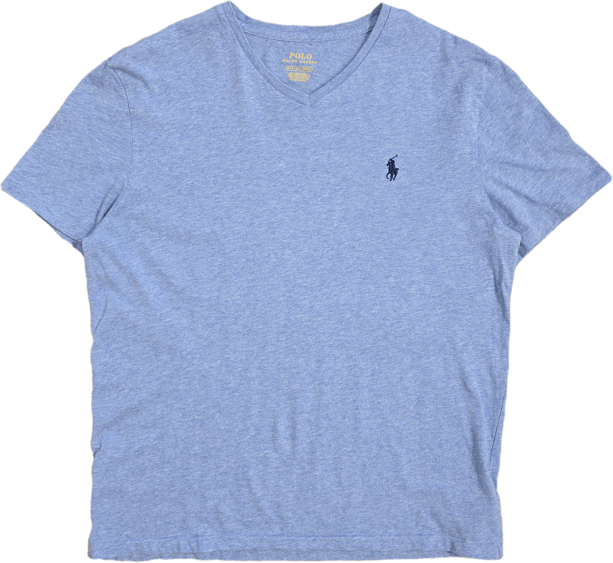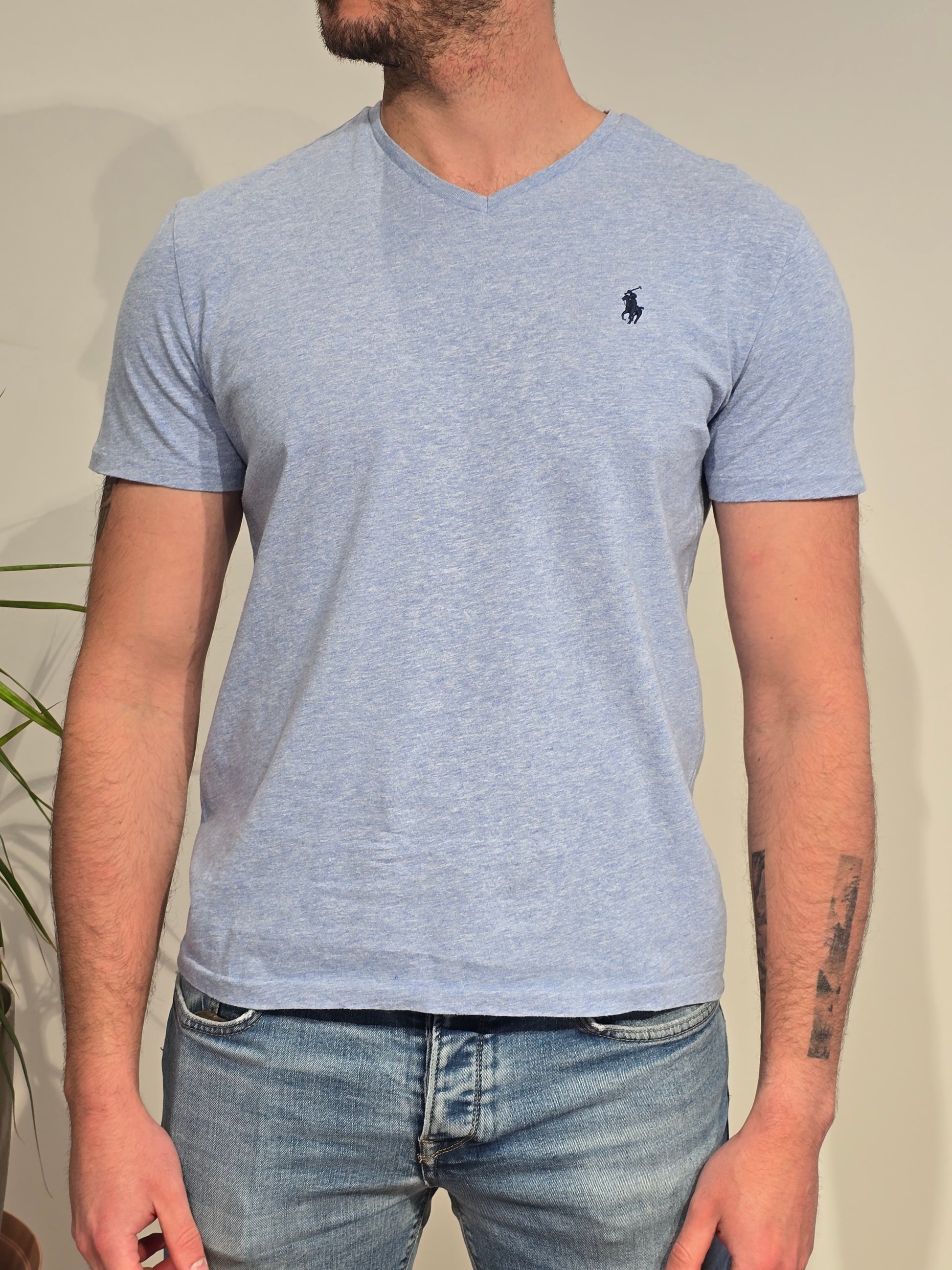 Article : Tee-shirt col V bleu clair, logo brodé marine